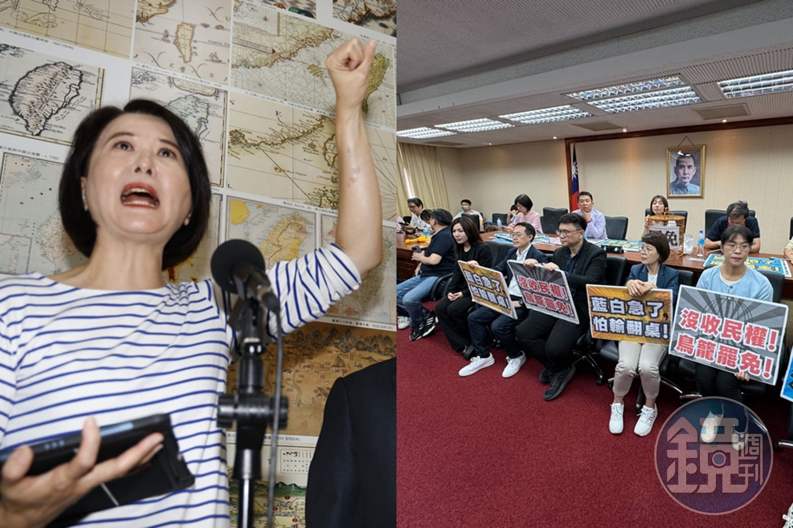 為了《公職人員選舉罷免法》修法國民黨團今一早6點就出現在立法院,沒想到綠委更早到場,直接占領會議室主席台,導致藍委不能開會,雙方因此爆發激烈肢體衝突。而綠黨團一到場後稱因天氣太熱,還把走廊外窗戶直接拆下來。