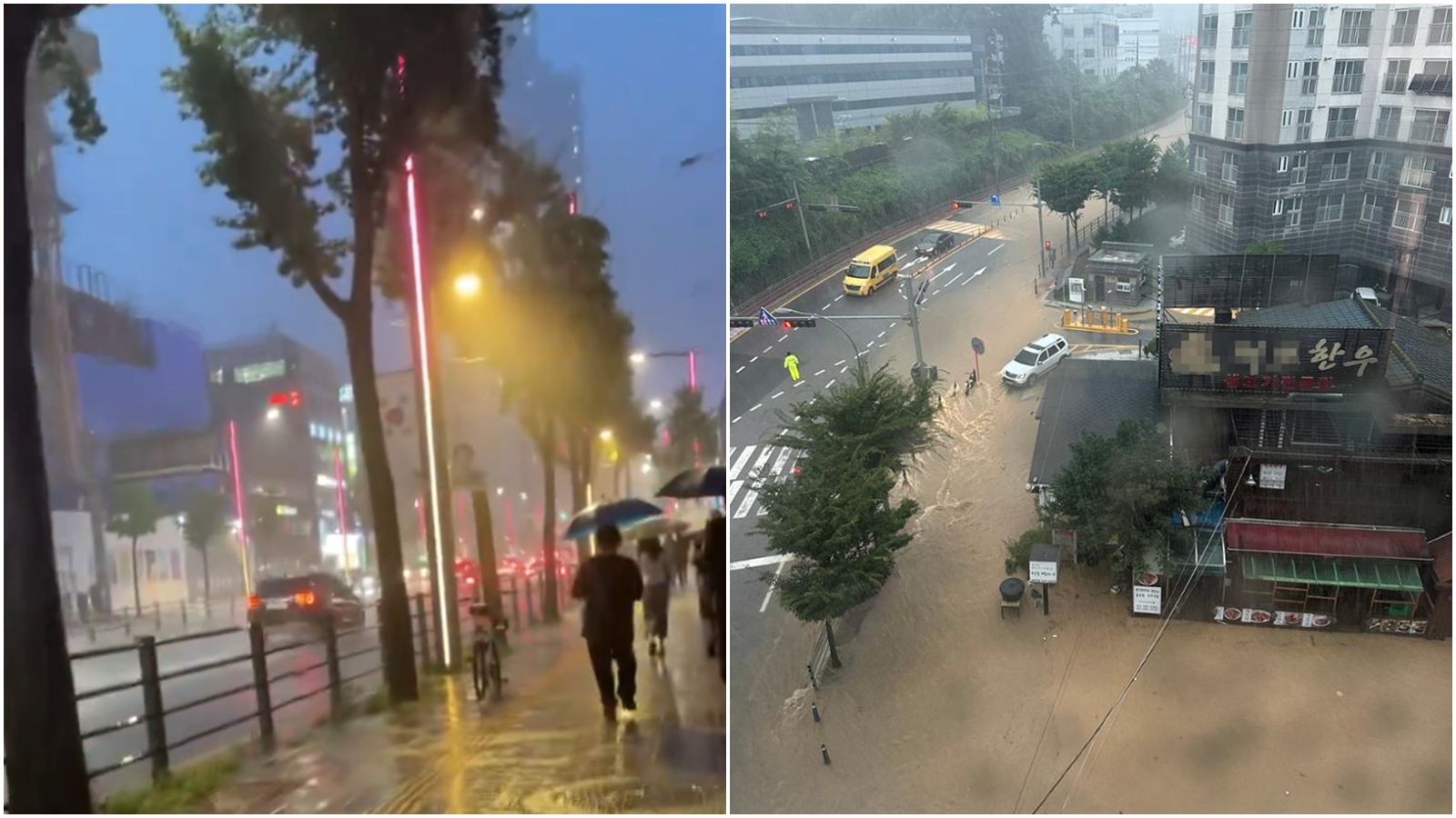南韓近日迎來梅雨季,首都圈連2天降下極限暴雨。(翻攝自X@koreatimescokr、@rassulsson)發布時間:2024.07.18 16:49 臺北時間