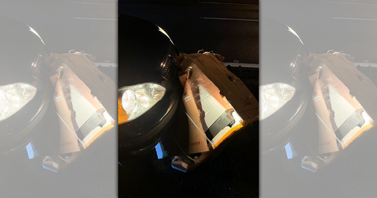 1名駕駛20日開車深夜行經國1南下高雄科學園區342K路段時,突然前面路上出現1個紙箱,他閃避不及撞上,爆出細小火花,趕緊開往路肩停靠,沒想到他下車查看發現紙箱內竟是1台重達10公斤的「洗衣機」。