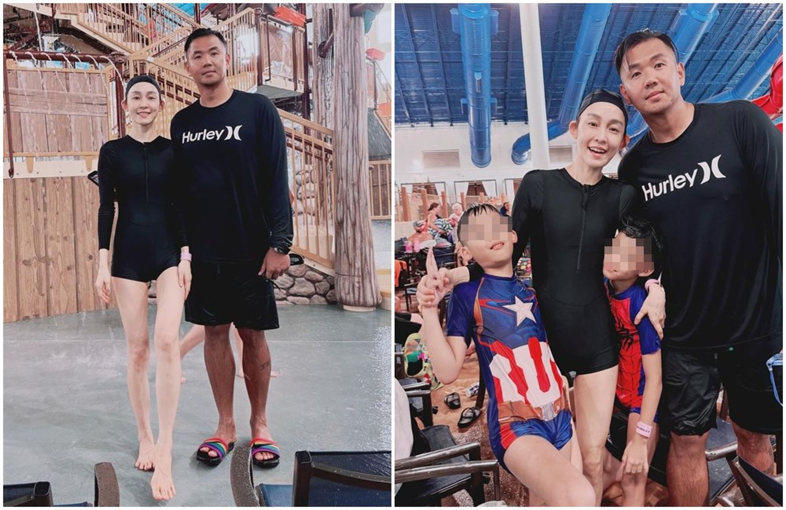 范瑋琪分享多張照片,可見她和丈夫孩子在水上樂園玩得不亦樂乎,她穿黑色長袖泳衣,露出「竹竿腿」,還戴黑色泳帽,另外也貼出弟弟、姪子的照片。黑人今(23日)也在限動貼出一家四口照,范瑋琪整個人相當瘦。