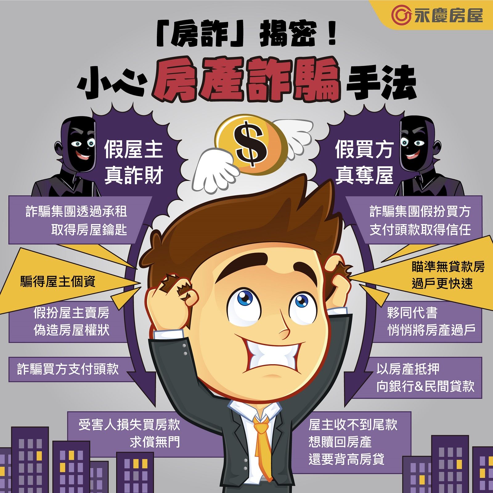 房地產價值不斐,小心詐騙集團從買賣中設下圈套!永慶房產專家提醒,詐騙手法日新月異,如果你以為買賣房屋時,有簽訂合約就不會受騙、收到買方頭款就無風險,恐怕已經暴露在不動產詐騙風險中。永慶專家就以實際案例,說明房產詐騙不是個案,提醒消費者警覺購售屋可能的詐騙手法!