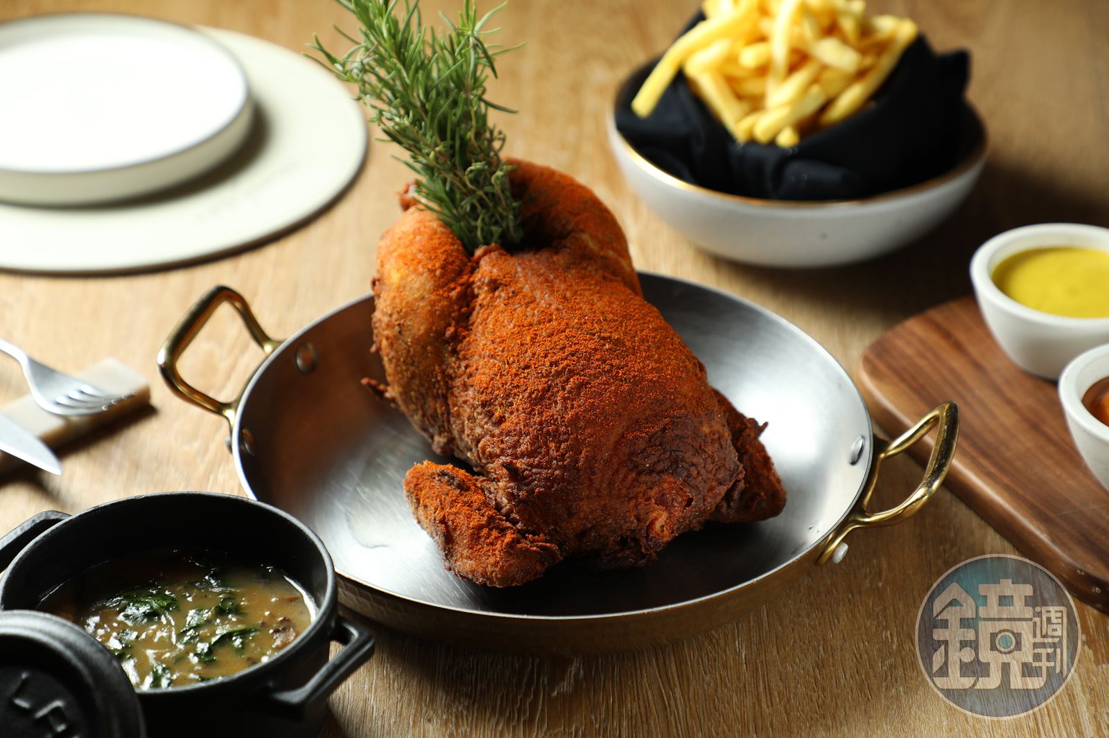 TIPSY Sparrow的「炸全雞、鴨油薯條、鄉村肉汁」油炸出香氣撲鼻的金黃外皮,又保持軟嫩的雞肉口感。(1,080元/份)