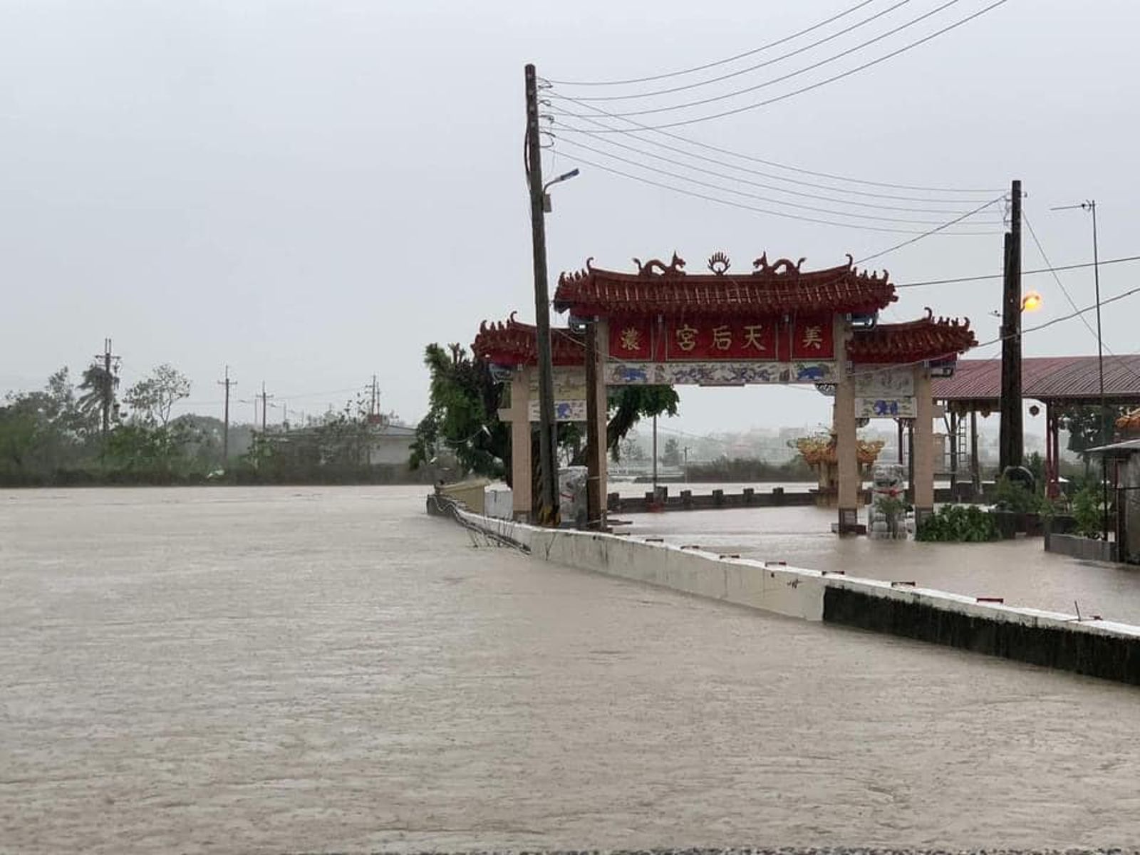 美濃天后宮前明顯可見溪水暴漲。(翻攝農民代言人_朱信強市議員臉書)發布時間:2024.07.25 15:17 臺北時間