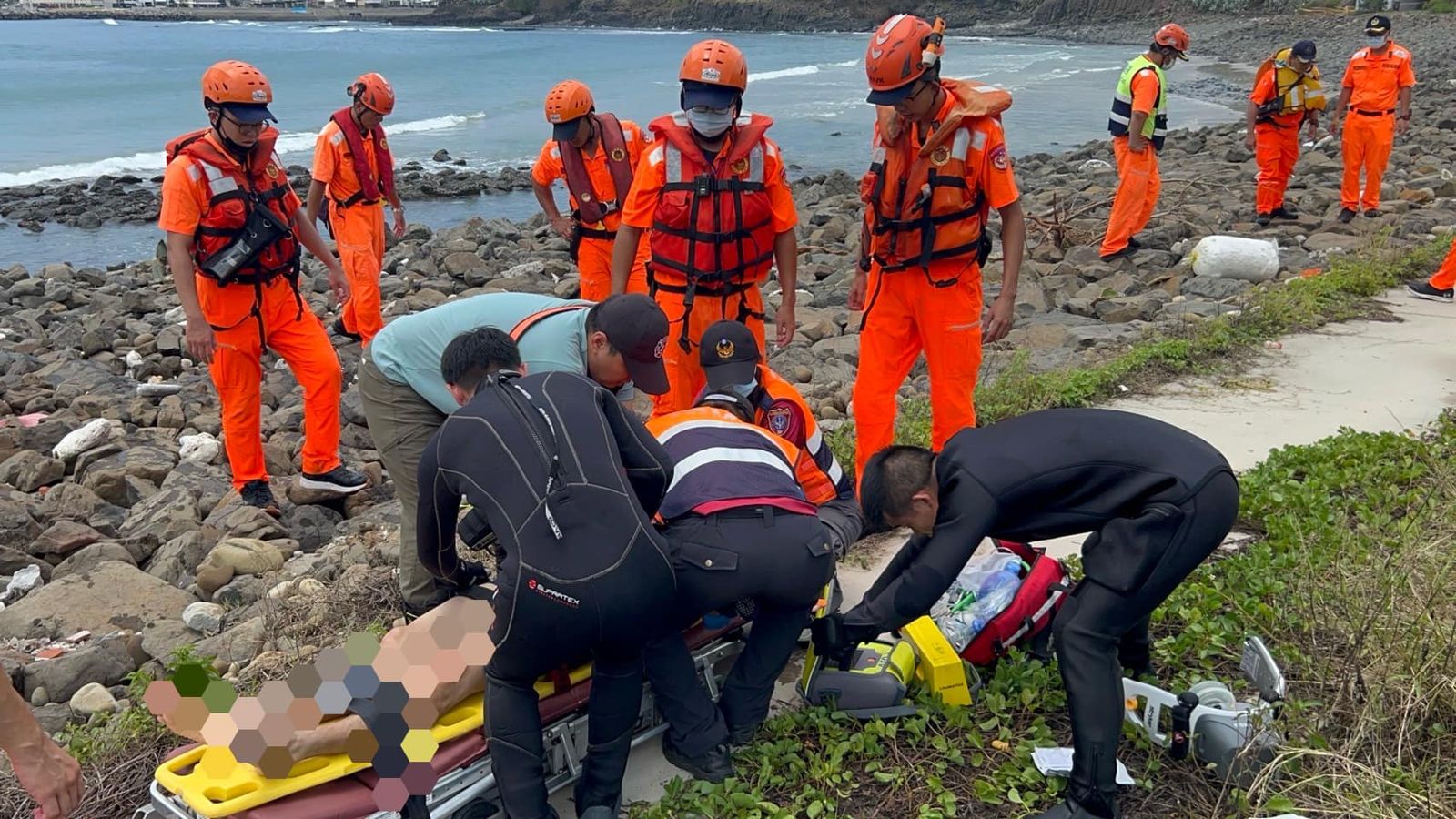 經詢問同行的友人,得知李男身著黑色上衣、綠色短褲並戴著黑色袖套,救難協會派遣潛水人員協助搜救,現場動員民間船艇4艘及海巡艇1艘加入搜尋。