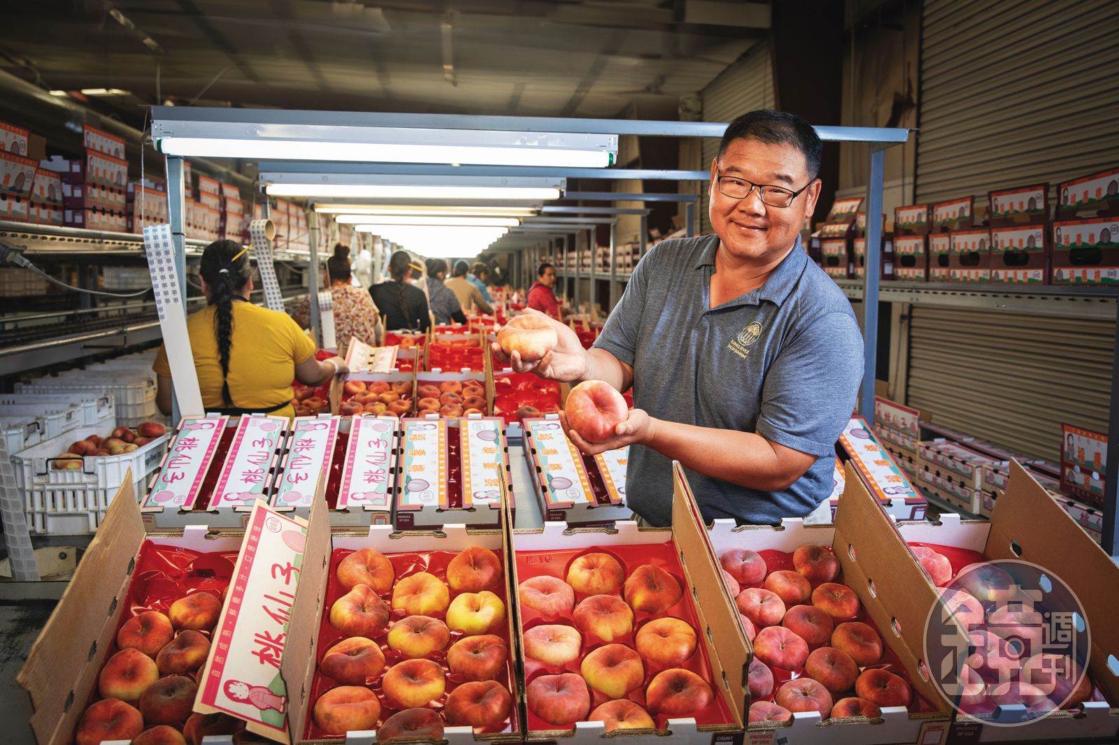他一開始就決定要自產自銷一條龍供貨,也因為做貿易時在台灣進口水果行口間做出口碑,自種水蜜桃優先銷往台灣;美國則交由批發商打市場,沒想到品質深受美國連鎖大華超市的青睞,直接向他進貨,讓汪松林可以自豪地說:「我們都是直接定好價格,問客人需要幾箱。」