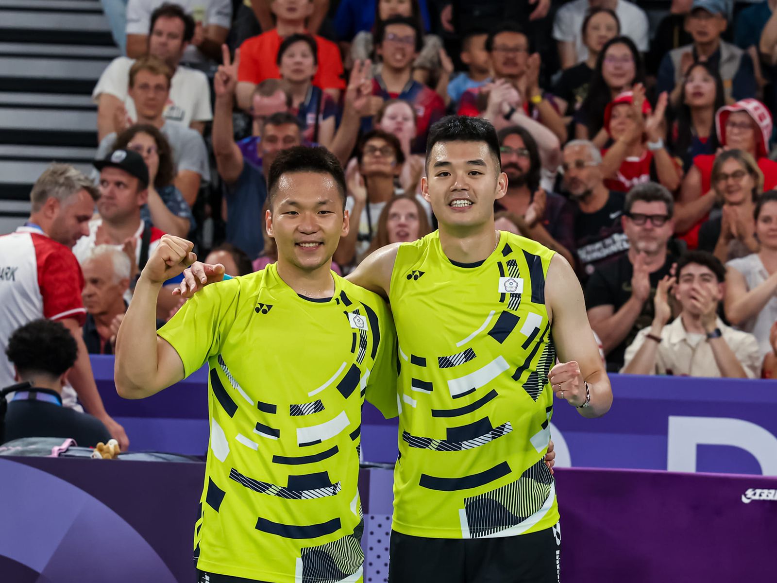 麟洋配在小組賽第二場比賽中,首局有個漂亮開場,率先取得4比1領先優勢,不過丹麥組合立刻回穩,雙方戰成5比5平手局面,麟洋配重新調整後,再度打出一波強勁攻勢,取得10比5領先,雙方多波交手後,麟洋配首局就以21:15先馳得點。