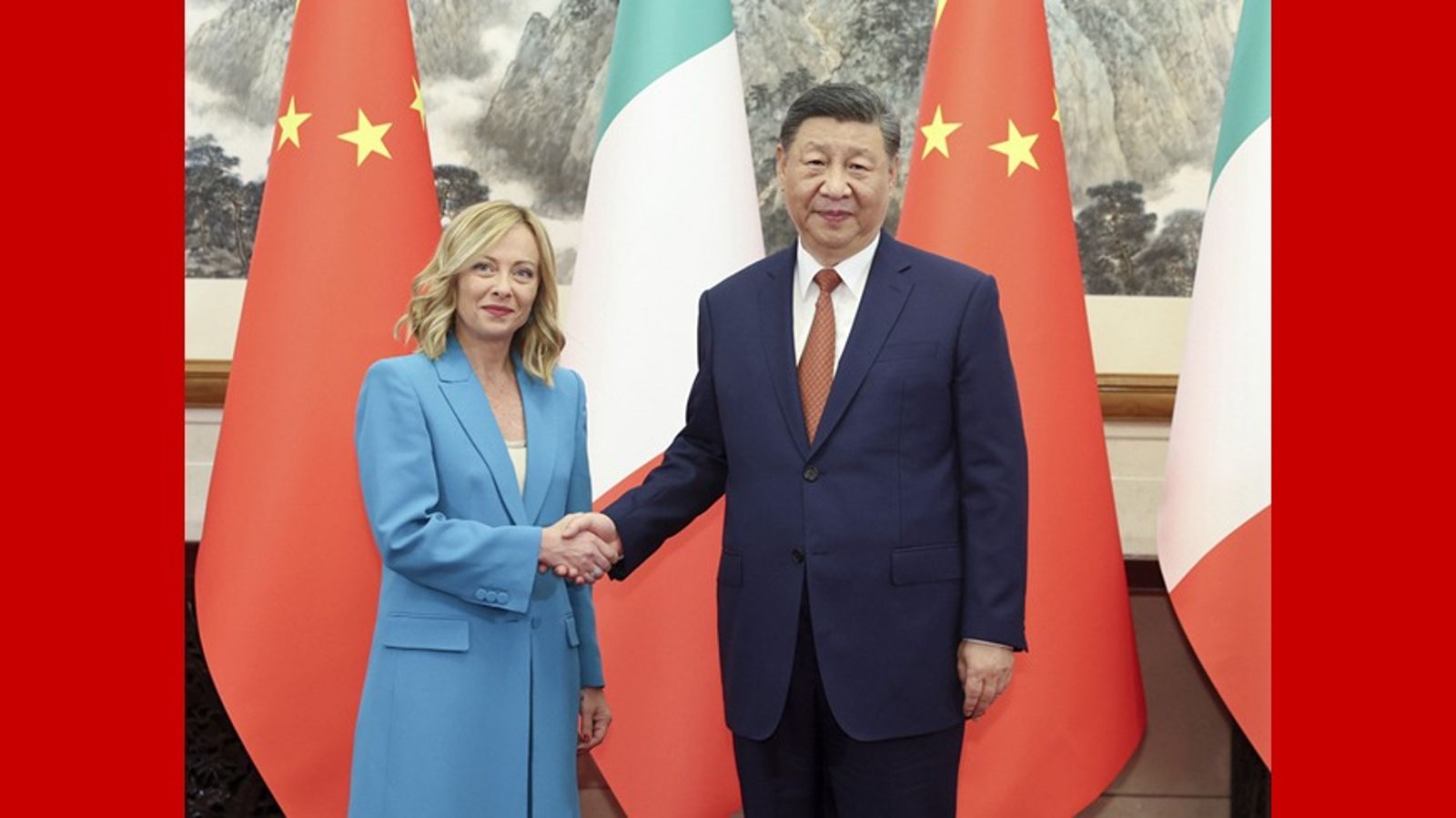 另一方面,梅洛尼在本月29日和中國國家主席習近平會面,兩人閉門會談約90分鐘。會後義大利總理府發表聲明指出,雙方在閉門會議討論俄烏戰爭、中東局勢及「印太地區日益緊張的局勢」。而中國方面則強調,梅洛尼表示義大利堅持奉行「一個中國政策」,希望與中方加強對話合作,但義國新聞稿卻沒有提到「一中」政策。