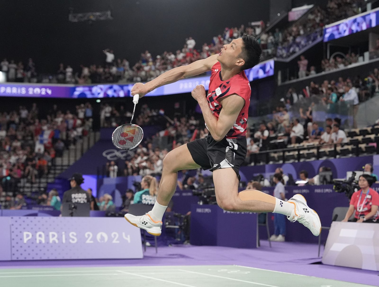 周天成以21比12、21比16,直落2橫掃日本對手晉級本屆8強。(中華奧會提供)發布時間:2024.08.01 16:37 臺北時間