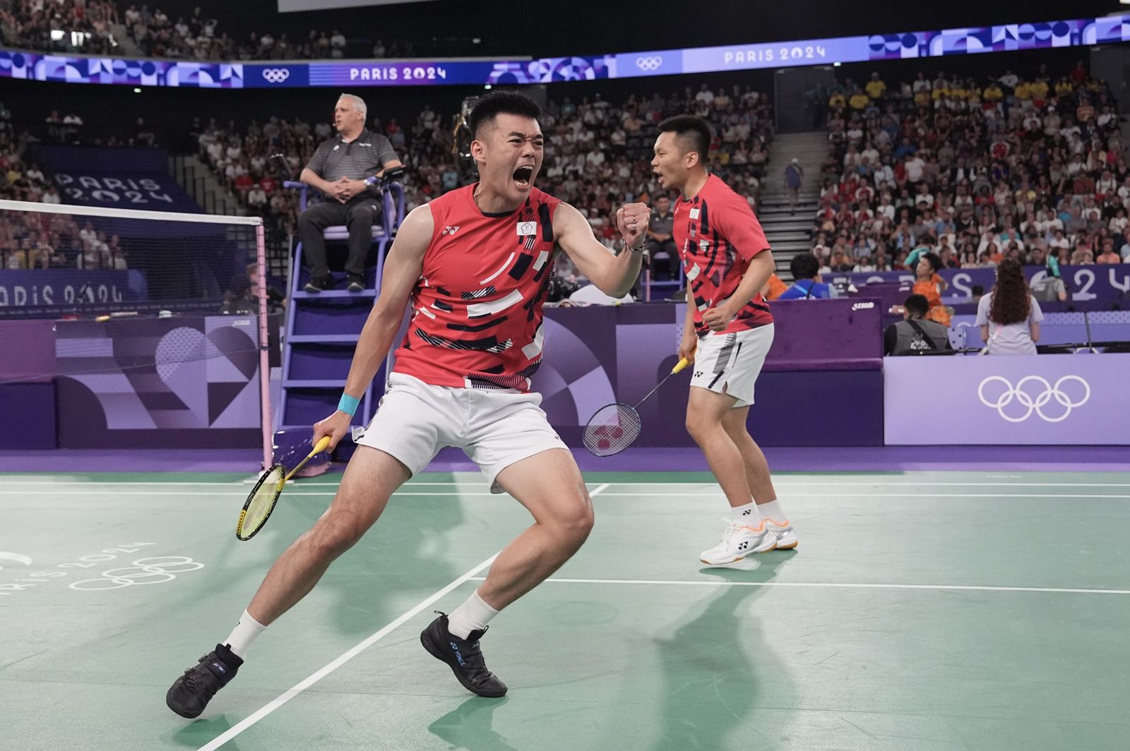 奧運羽球男雙衛冕組合「麟洋配」王齊麟、李洋,昨晚(7月31日)小組賽逆轉中國組合歐烜屹、劉雨辰,搶下8強門票,收下小組4連勝,成功在死亡之組突圍。決勝局中王齊麟一度在網前倒地,對手見狀趁勢攻擊,王齊麟乾脆躺著打且連續2拍回球,最終兩人完美守下這1分,直接示範何謂「躺著贏」。