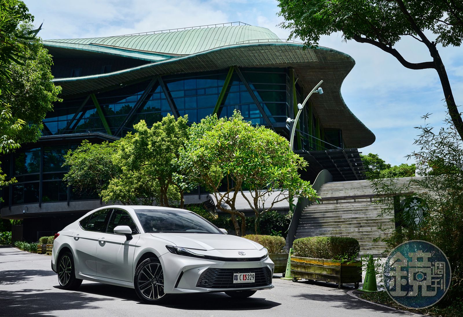 更具動感化的造型,無疑是第9代Camry的重點。採用"Sedan to the Core"設計語彙,車頭採用雙髻鯊造型,搭配全新的水箱護罩設計,呈現出強烈的侵略性。這樣的設計不僅提升了整車的辨識度,更加凸顯了 Camry 的運動氣息。車側最大的變化則是延長的後窗與窄化的C柱,搭配延長了35mm的車長,讓側面線條更為流暢俐落,甚至還有些GT跑車的味道。後方設計延續雙髻鯊造型,尾部線條與車身完美融合,搭配銳利的 C 字型 LED 頭燈,無論在白天還是夜晚,都能給人留下深刻的印象。試駕車標配 18 吋銀黑雙色切削鋁圈,搭配235/45 R18尺寸的Dunlop SP SportMaxx 060+配胎,除了營造出質感與大氣兼備的視覺效果外,對於操控樂趣與行駛穩定性亦有所助益。