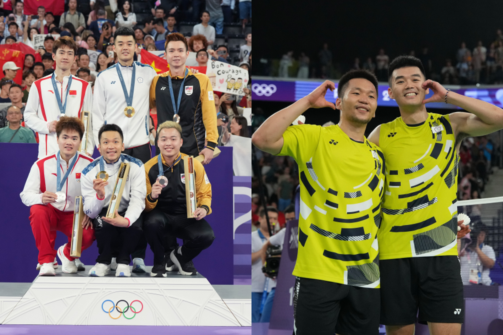 而在頒獎環節一定會有的金銀銅牌自拍合照,李洋、王齊麟與銀牌的中國組合梁偉鏗/王昶以及銅牌的大馬組合蘇偉譯/謝定峰合影,李洋逗趣對掌鏡的蘇偉譯說「你要拍好喔,我只剩這一張可以拍喔」,瞬間逗笑謝定峰。