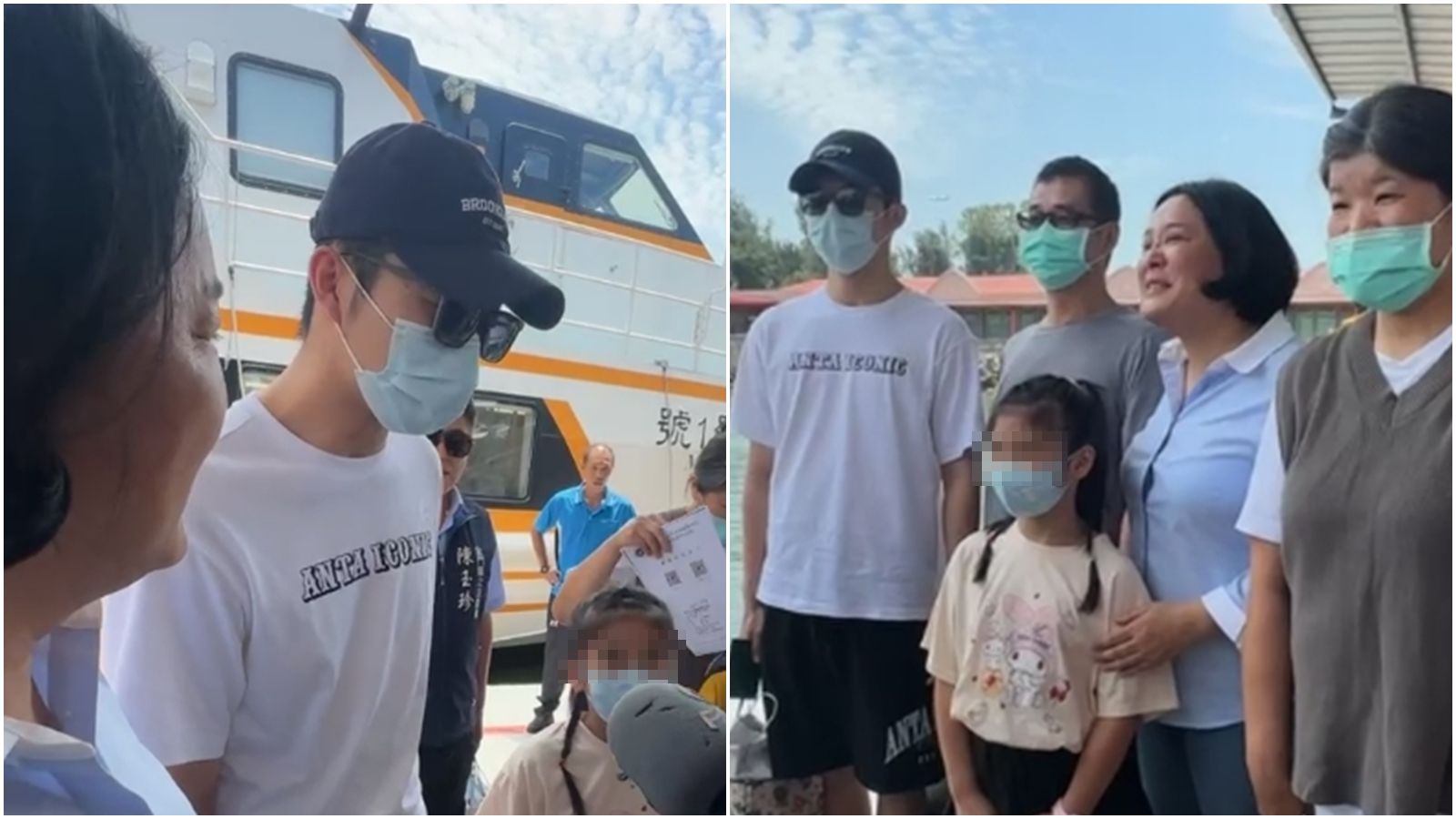 胡男家屬特製2面錦旗,感謝福建省海警局的救援及福建省台辦的照顧,而福建省台辦則提供家屬胡姓釣客的健康檢查報告,證明胡男身體健康。胡男約於11時許抵達金門,他受訪透露胖了8、9公斤,回家後最想和家人好好吃頓飯。