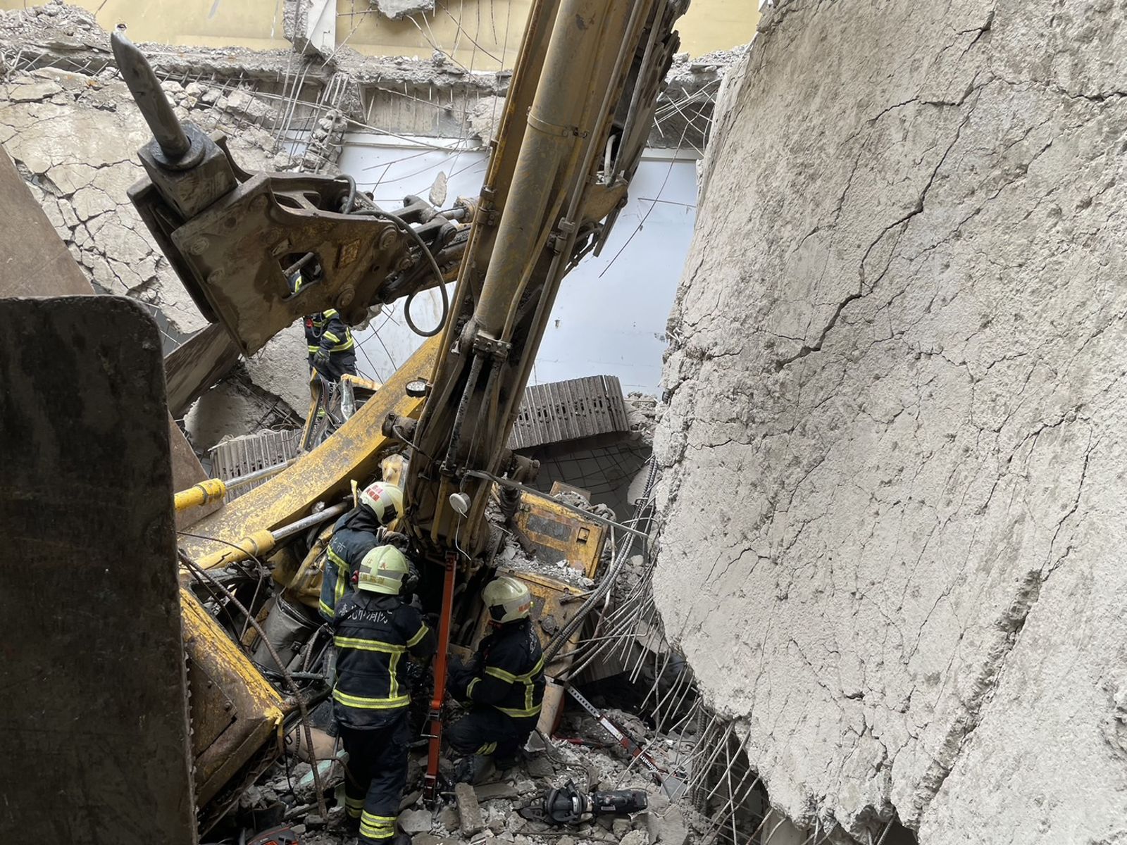 現場崩塌狀況嚴重,警消設法救出怪手駕駛。(翻攝畫面)現場崩塌狀況嚴重,警消設法救出怪手駕駛。(翻攝畫面)另名怪手劉姓副駕駛(36歲)則是幸運逃出,他頭部流血受傷,意識清楚,經119送往北醫救治,無大礙,意外確切原因及責任歸屬則有待後續調查釐清。