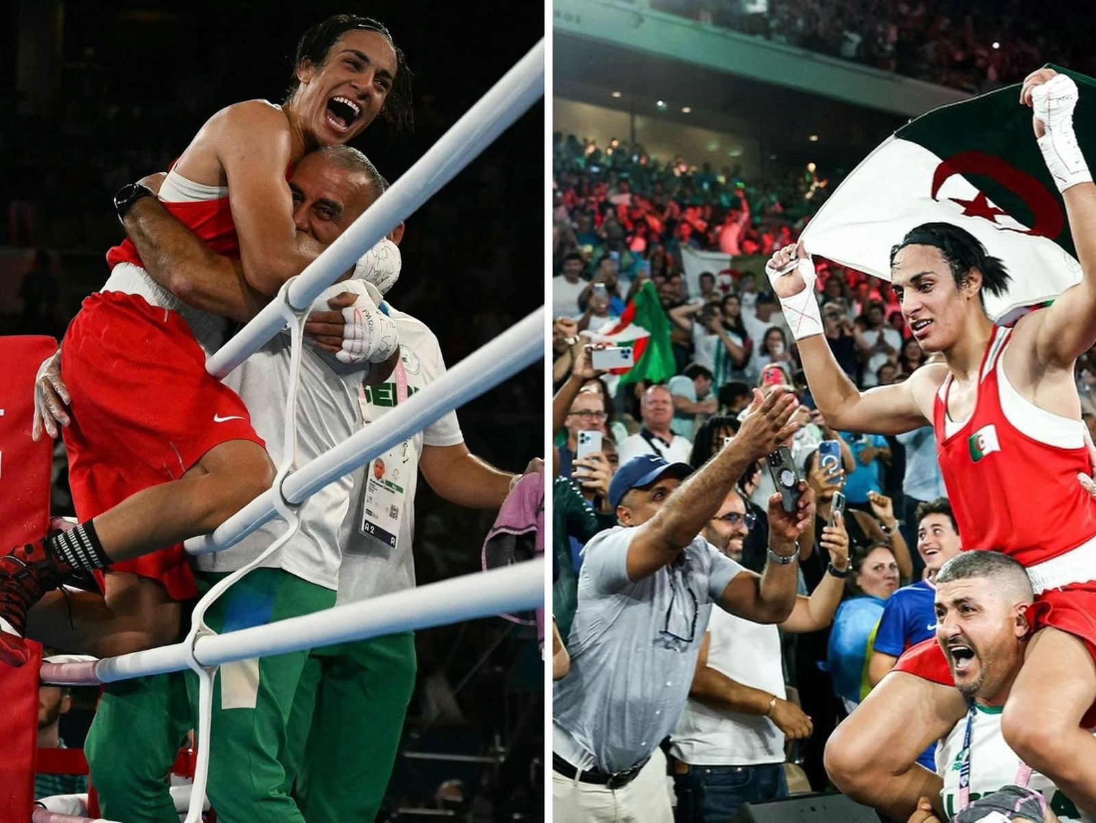 哈利夫今上場時受到阿爾及利亞民眾力挺,旗海飄揚,她也沒有辜負家鄉期盼,從第1回合到第3回合都以碾壓方式獲得裁判青睞,最終以5比0獲勝,現場傳來熱烈歡呼聲。