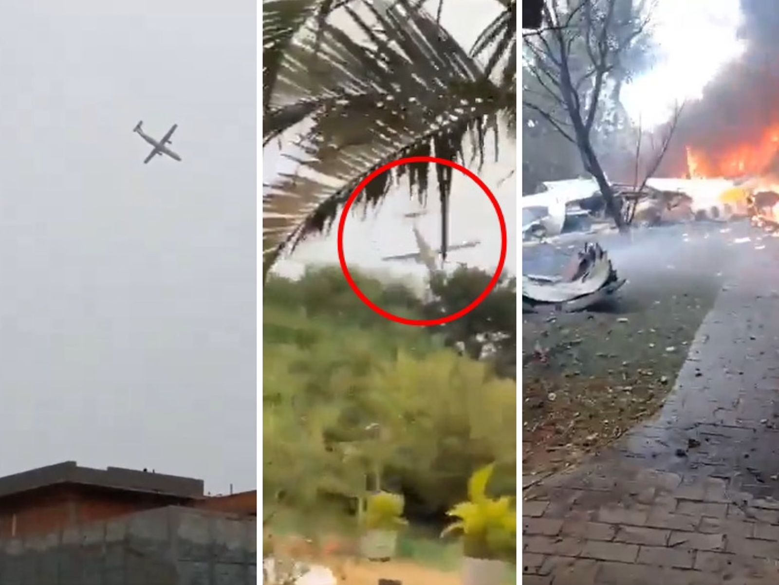 社群平台上流傳各角度畫面,飛機於空中旋轉「轉圈圈」,最後向下掉落到地面上,隨後伴隨巨大聲響,整架飛機陷入火海狂冒黑煙。