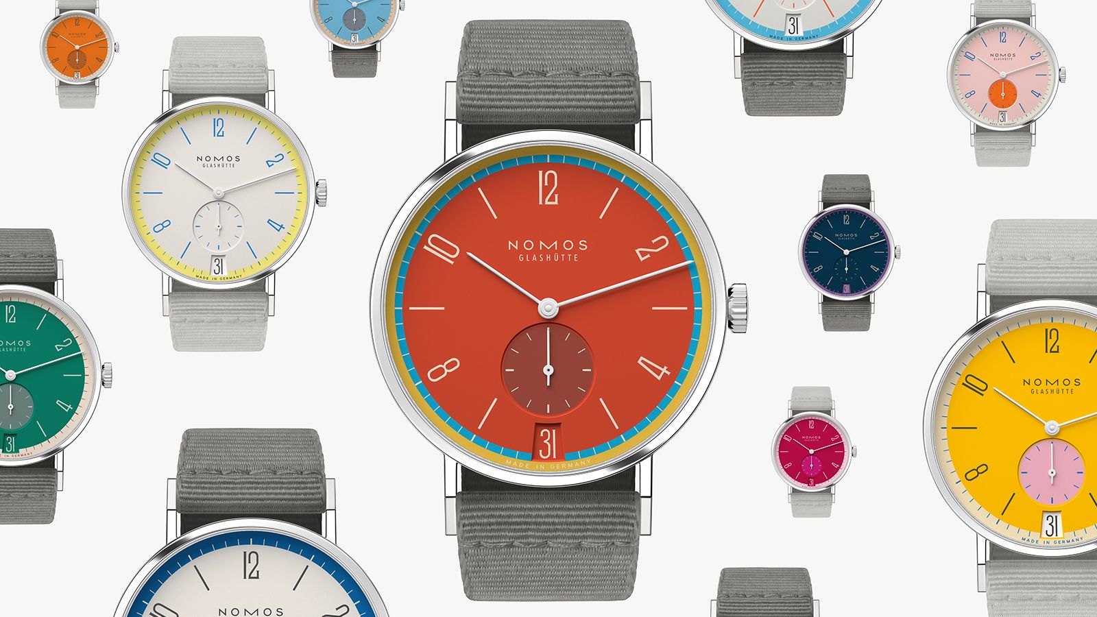 講到單純利用色彩就能做出辨識度的品牌,德系製錶小清新NOMOS就是前段班的模範生。設計功力非常深厚的NOMOS,今年一口氣推出了31只配色完全不一樣的Tangente 38日期腕錶,之所以推出31款是為了對應一個月最多有31天,而每一款的顏色變化都會根據錶款的主題,做出不一樣的搭配,每一只錶也都有自己的名字,把配色和名字搭配在一起看的時候,彷彿是想像力激盪的連連看遊戲,錶款一字排開真的非常有氣勢,每只都想上手試試看,不自覺讓人陷入抉擇障礙應該是唯一的缺點。