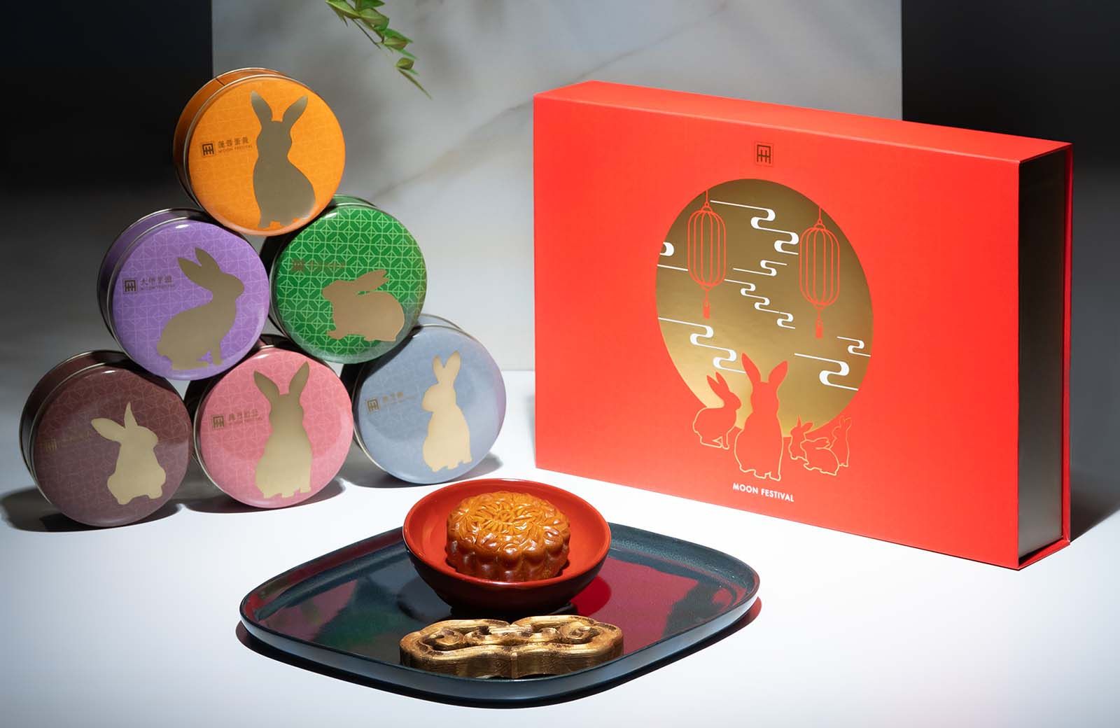 國賓今年以富有中秋意象的「月亮」和「兔子」作為禮盒的設計元素,來傳遞「中秋月下喜團圓、金兔嬉戲好運到」的理念,讓收禮的那一方,能感受最平凡可貴的祝福。