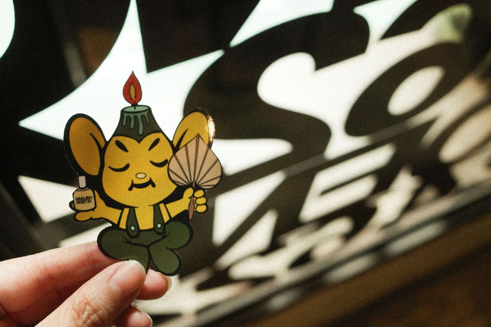台灣塗鴉藝術家NOE為東京知名塗鴉團體「246」成員,持續於國際街頭創作將近20年,透過貼紙、噴漆等方式展現前衛的藝術語彙。此次三方的聯乘發表全新創作展覽,NOE的經典創作角色「Pipo君」搖身一變成為「大麻草君」,並將(MALIN+GOETZ)經典的香水瓶、香氛蠟燭圖像與角色結合,透過手持搖扇的泰然姿態,以及平和鬆弛的冥想神情,打造出將香氣具象化的全新角色,其他還有結合「To be free」精神的繪畫、影像與複合媒材裝置作品。