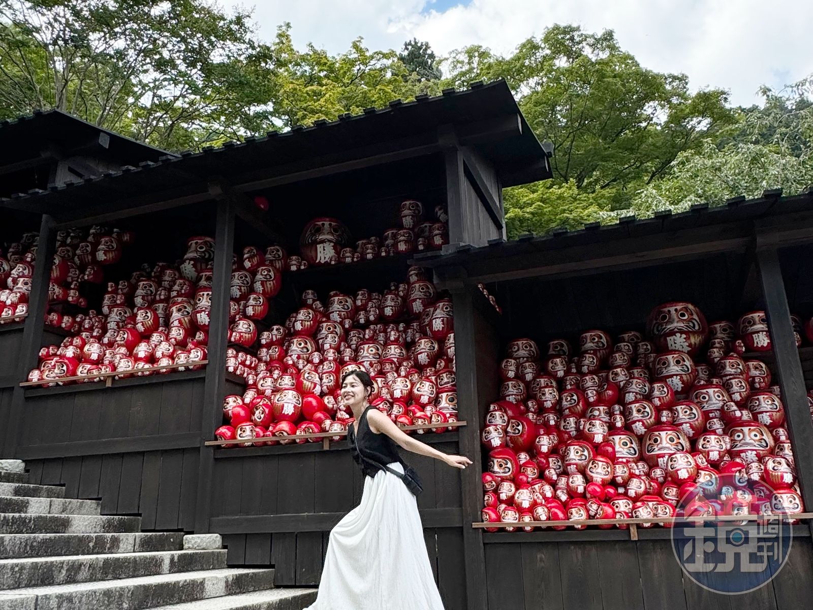 踏入園內,成千上萬個達摩不倒翁立刻映入眼簾,石階、樹梢上甚至小溪流間都藏有紅色達摩,抬頭見、低頭也見,只要眼睛夠尖,四處都能發現他們的小小身影。原來散落四處的小達摩是信徒們留下的「迷你達摩籤詩」,不倒翁裡頭藏著籤文,解完籤後,達摩可以帶回家留念,或找個喜歡的地方將小達摩留在此處與夥伴們相伴,數大更可愛。