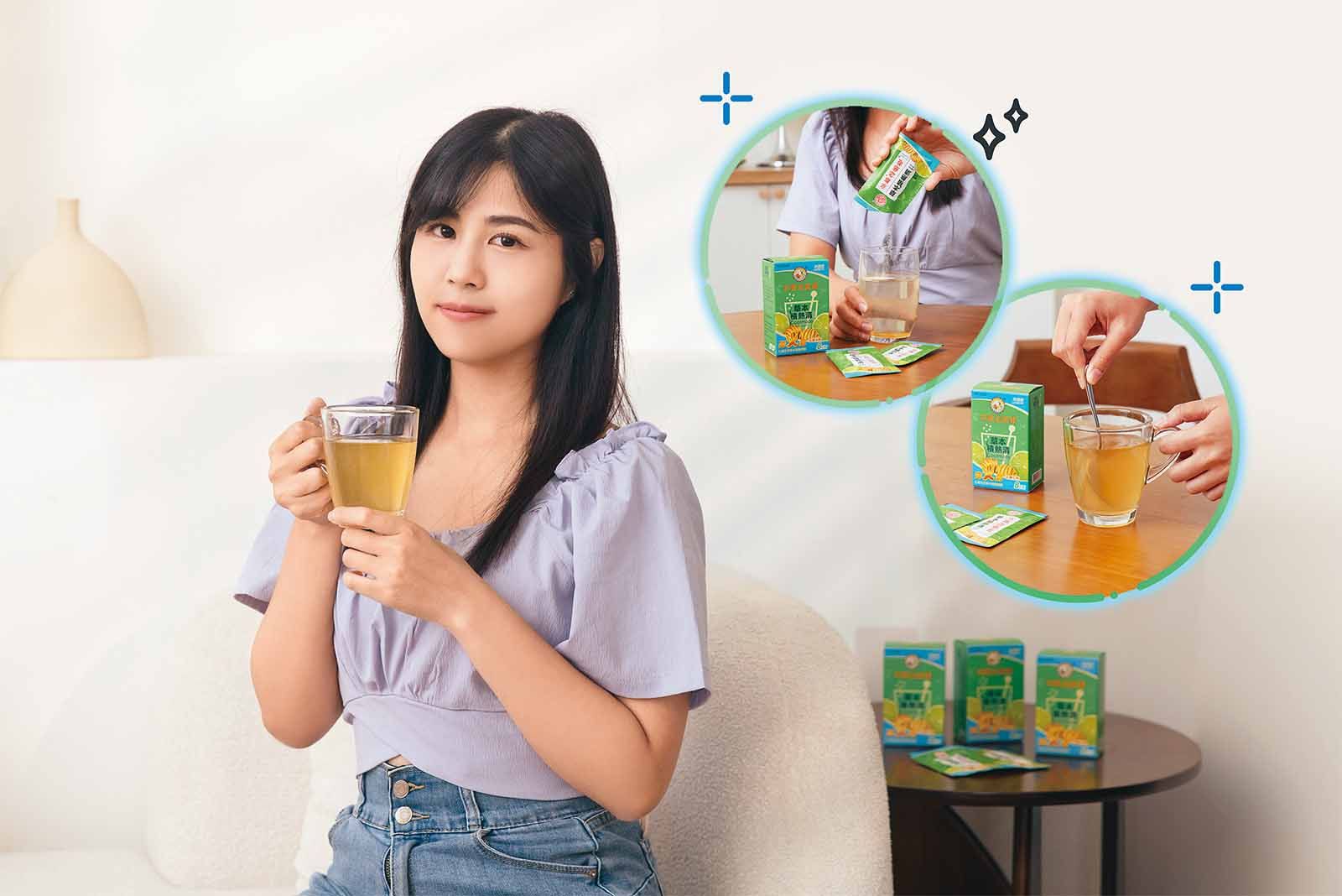 百年品牌京都念慈菴身為草本專家,此次特別推出了「草本積熱清」,飲用方式也超簡單,只要30秒撕開包裝後沖泡即可,但別小看這小小一包,它含括了名貴的石斛、白茅根、薏苡仁、金銀花、陳皮、羅漢果、決明子等草本萃取,再加上檸檬,喝起來涼涼的十分清爽,喝過的人都好像在喝檸檬茶一樣卻更加清爽,無論你是喜歡溫熱口感或清涼口感都可以隨心調整!