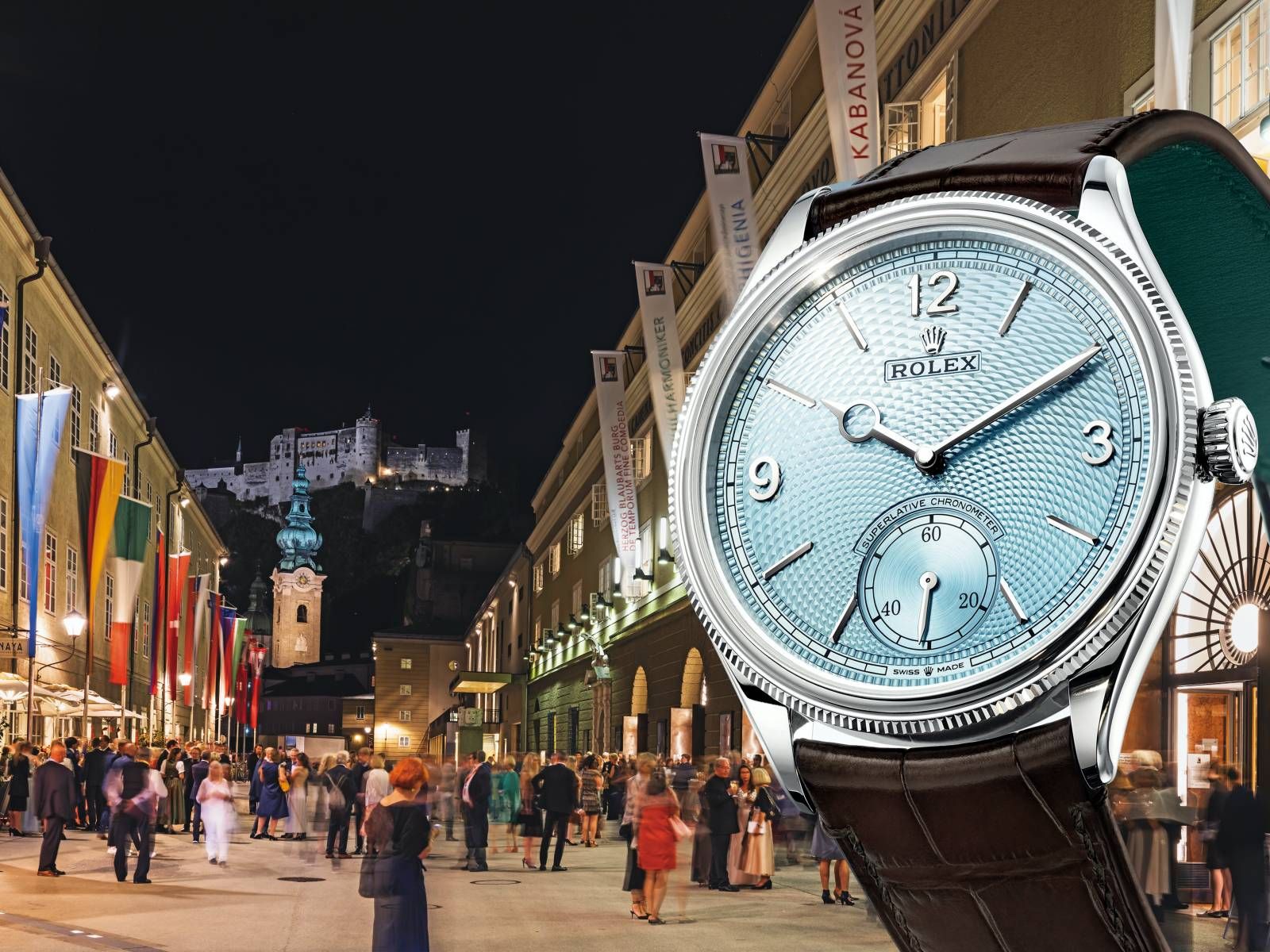 看歌劇,曾經是上流社會最重要的社交場合之一,必須要盛裝。比如到「巴黎國家歌劇院」或「倫敦皇家歌劇院」這些富有盛名與歷史的劇院,有人仍會穿著黑領結禮服正裝出席。所以,當接獲勞力士邀請,參加此次「薩爾斯堡藝術節」採訪之時,我很仔細問了「衣著規範」,深怕失了禮。還好,這一次只要Cocktail Attire(雞尾酒服)即可。在飯店房間的穿衣鏡前,仔細打理自己的衣著,穿上西裝,打了領帶;我心想,這時候要是可以戴上一枚勞力士1908冰藍面鉑金錶,該有多好。