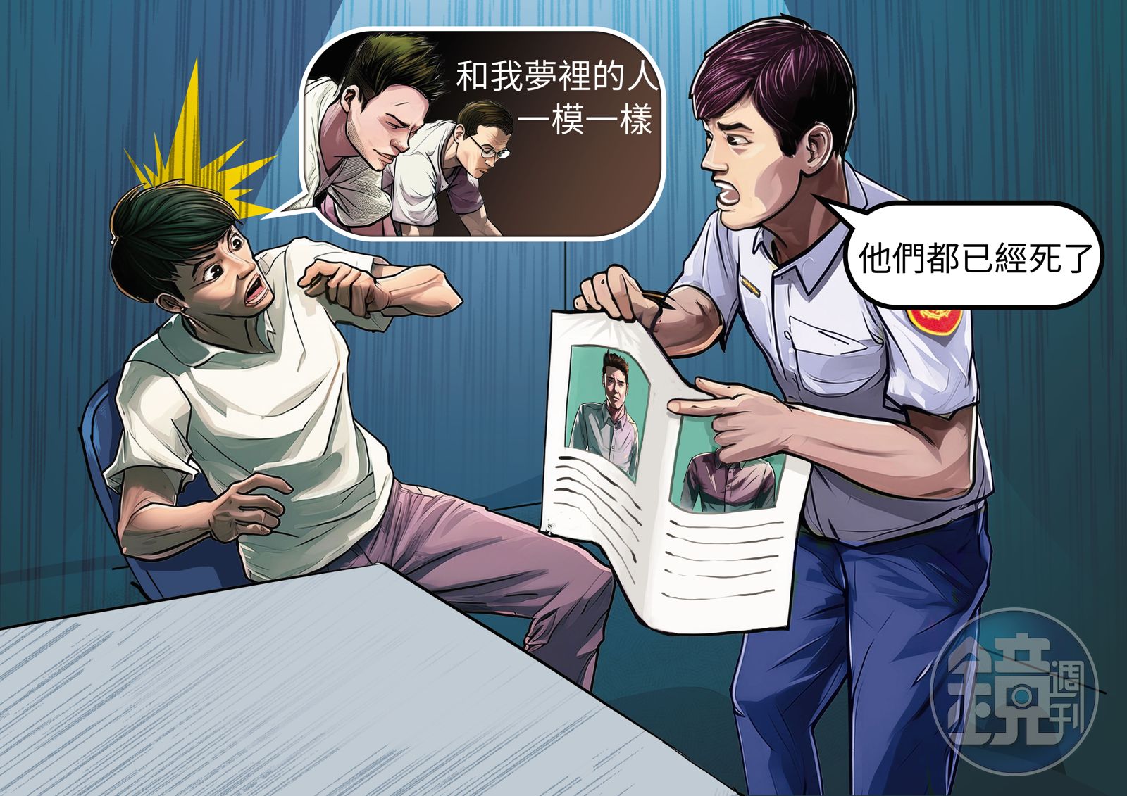 更詭異的是,警方把簡男、康男的照片拿給呂男指認時,他當場驚呼,因為這2人的長相,跟夢中見到的成年男子一模一樣。由於3人國中畢業後就沒聯絡,呂男沒再見過2人,也不知道2人已經過世,如此靈異的巧合,讓呂男及現場員警都起雞皮疙瘩。