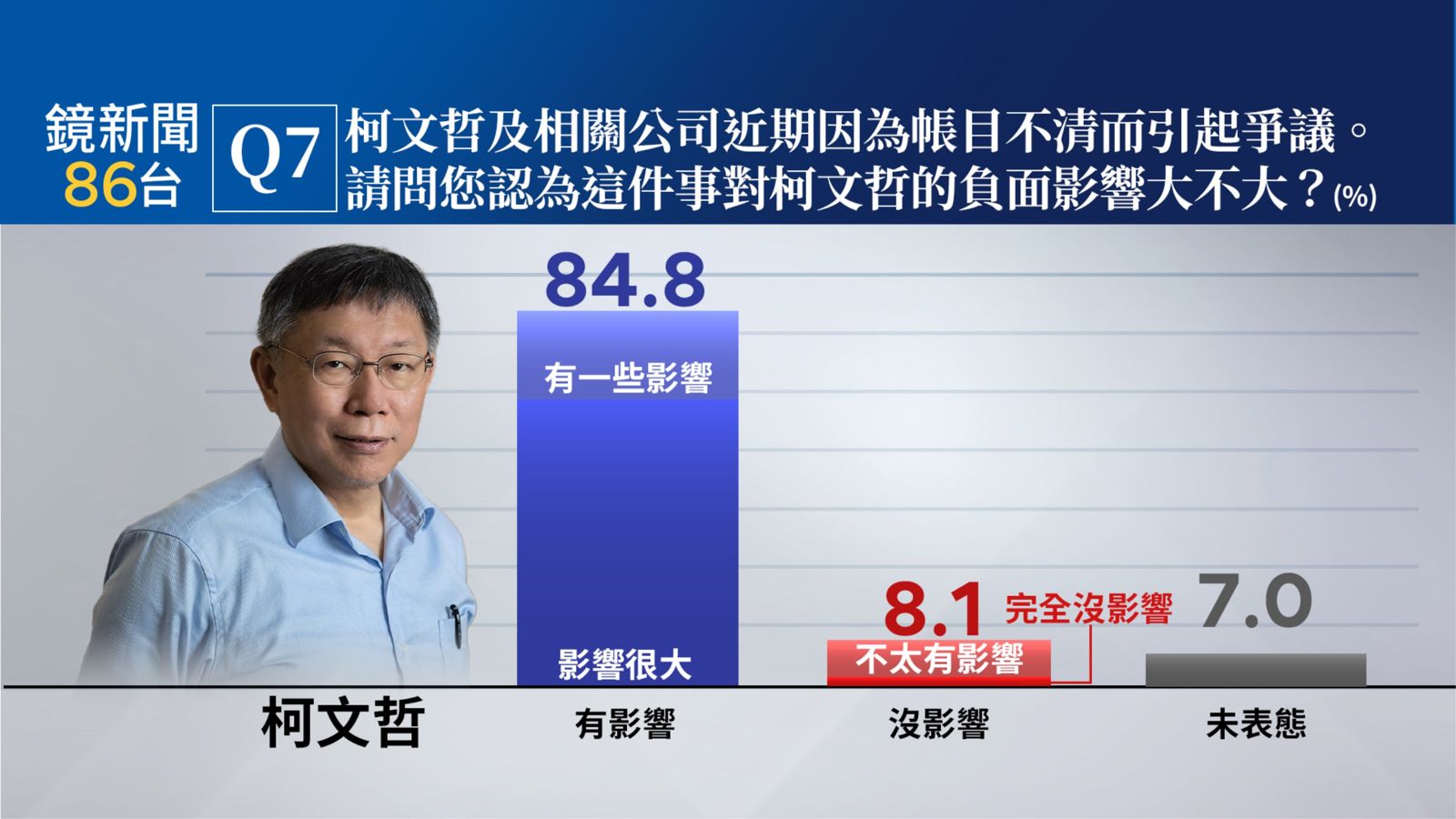 政治獻金「混帳」:84.8%認為對柯負面影響大!;55.5%對柯看法變壞!!