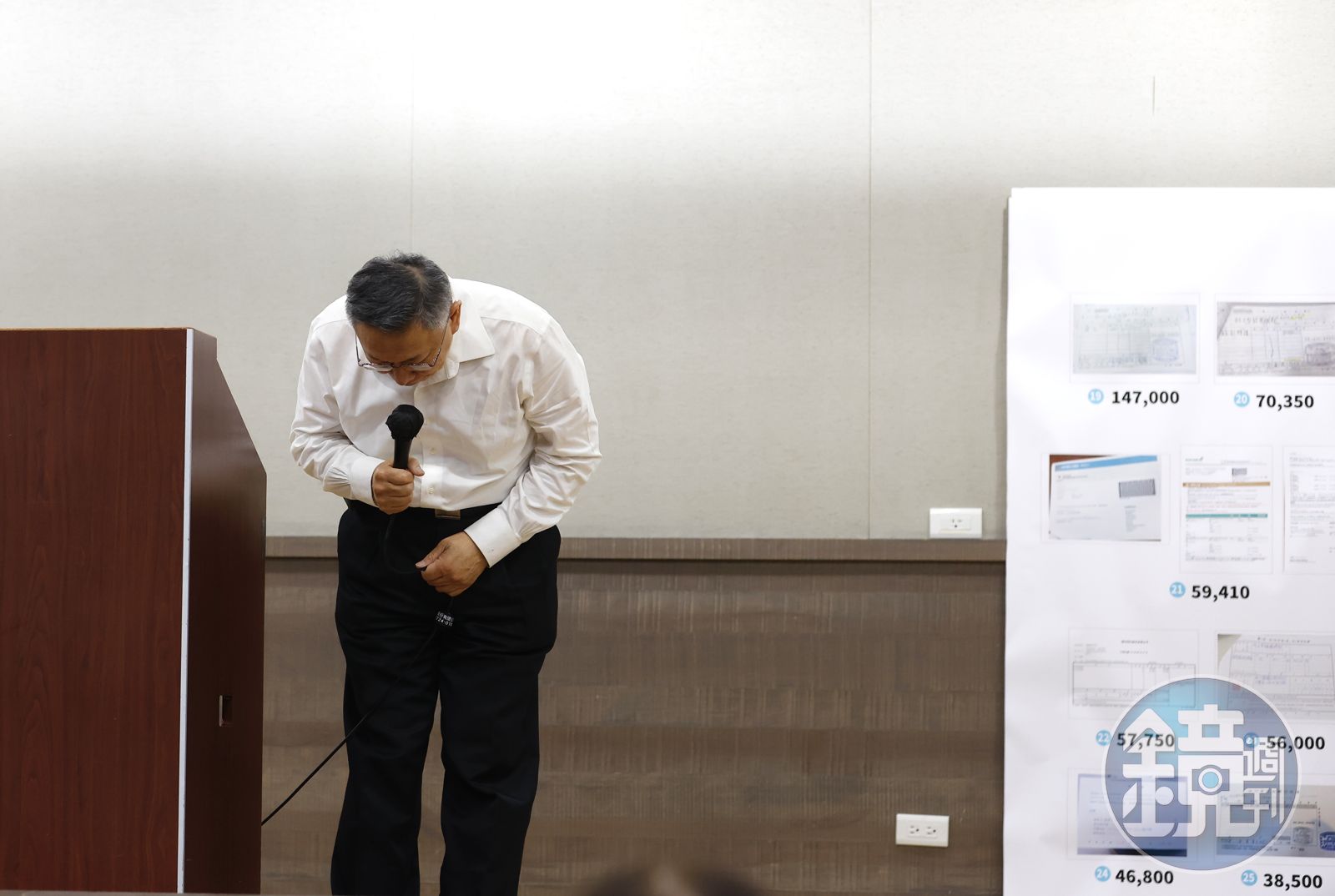 柯文哲鞠躬道歉,表示由於種種錯誤,造成各界紛擾,讓支持者失望,他會負起最大責任,請假黨主席3個月,並主動向民眾黨中評會申請調查,他個人會深刻反省,思考自己還能不能帶領民眾黨,或是給支持者一個願景跟繼續前進的力量。