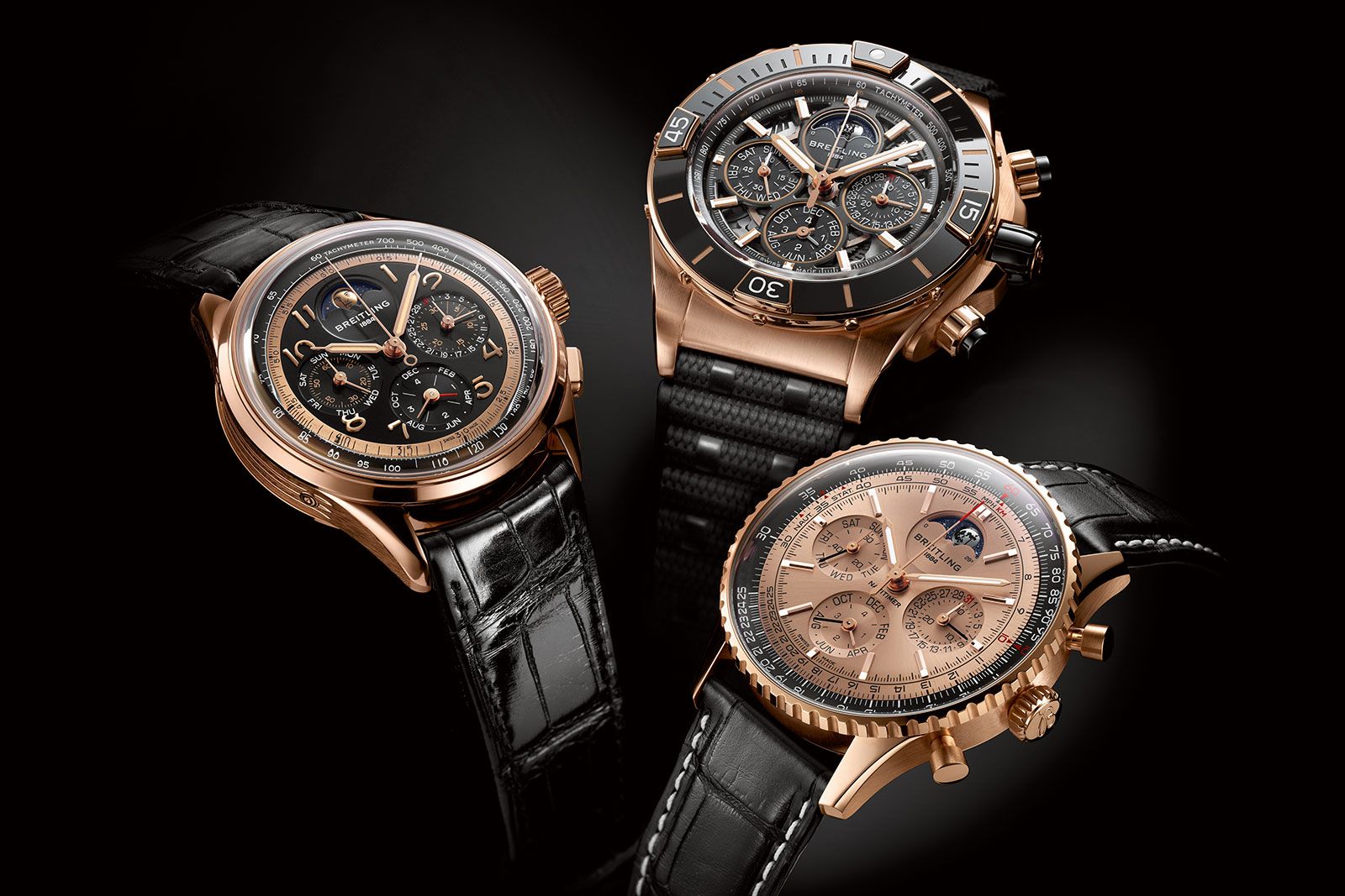 《GWD 2024 現場直擊》百年靈推出首枚自製萬年曆計時機芯,並以三種不同面貌同時現身