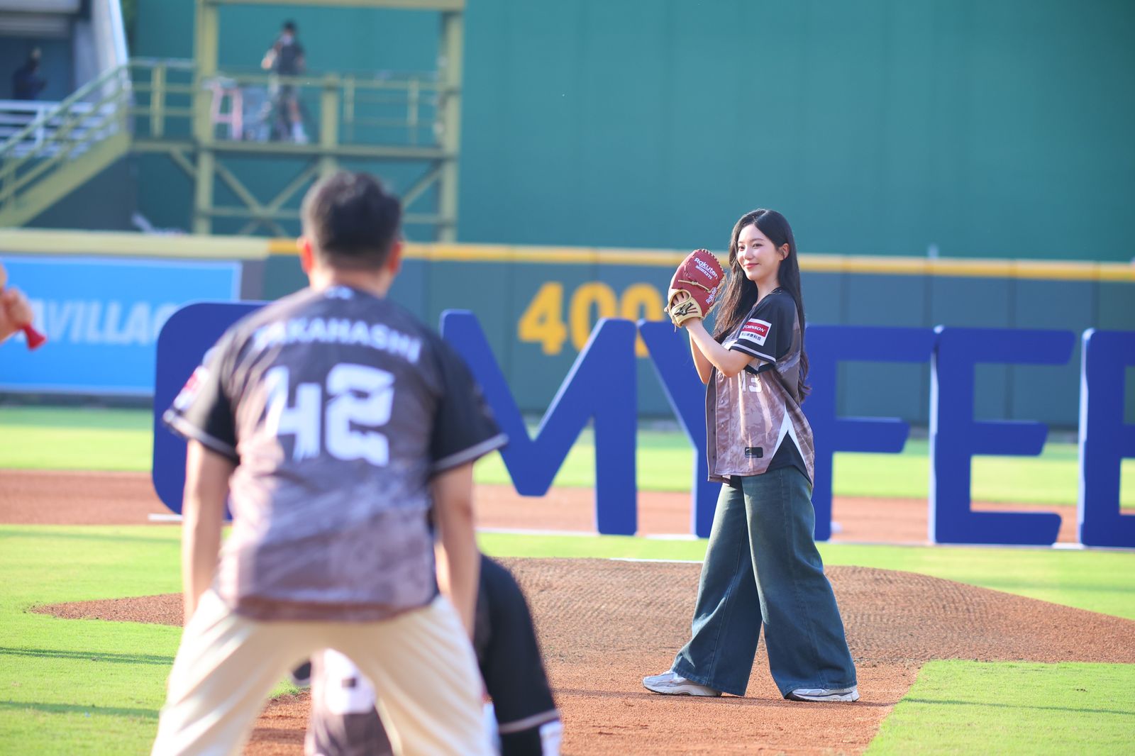 Rakuten Monkeys主題日這次由亞洲跨國集資平台MYFEEL冠名贊助,聯手打造MYFEEL阿迷趴。31日邀請韓星尹廈情來台開球,她一現身,讓球團後台每個人都目不轉睛,大讚她皮膚好又很nice。
