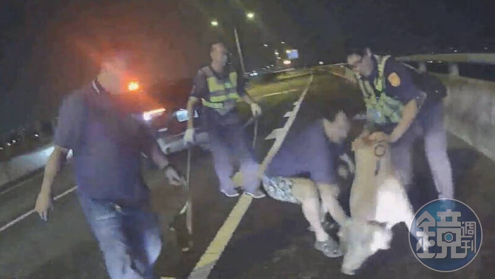 轄區霧峰分局四德派出所所長王玨、警員吳正欣等人前往處理,當時因豬隻亂竄,已經影響交通,於是警方當機立斷,封閉一個車道,並在高速公路局員林工務段人員協助下,合力抓豬。