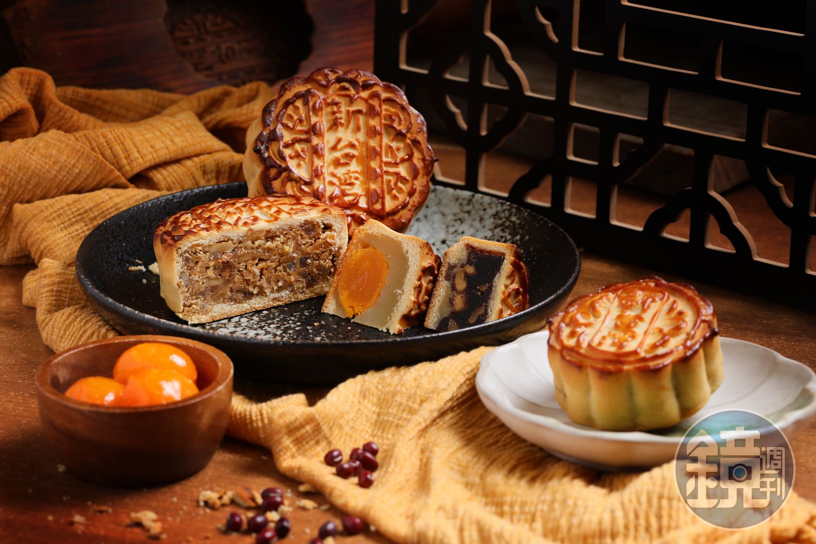 皮薄餡多的廣式月餅有多種口味,「伍仁」(左)、「蓮蓉蛋黃」(中)、「棗泥核桃」(右)都是老主顧必買首選,尺寸分為大中小。(55~230元/個)發布時間:2024.09.06 06:47 臺北時間