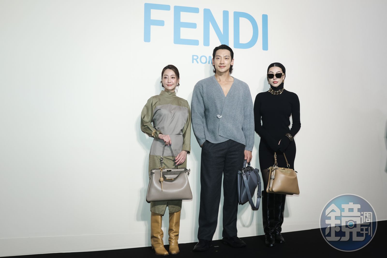 謝欣穎(左)與蔡詩芸(右)在FENDI活動現場跟Rain同台合影。發布時間:2024.09.12 21:32 臺北時間