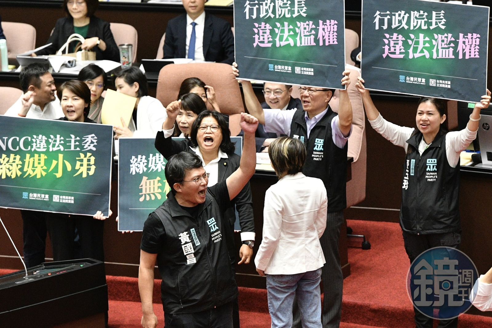除了抗議行政院的法律解釋,民眾黨團還提出了NCC組織法的修正草案,要求明文規定該法在三讀通過後立即生效。民眾黨強調,希望透過此一提案,能夠推動NCC組織法修正案的順利通過,並要求行政院立刻落實新法。