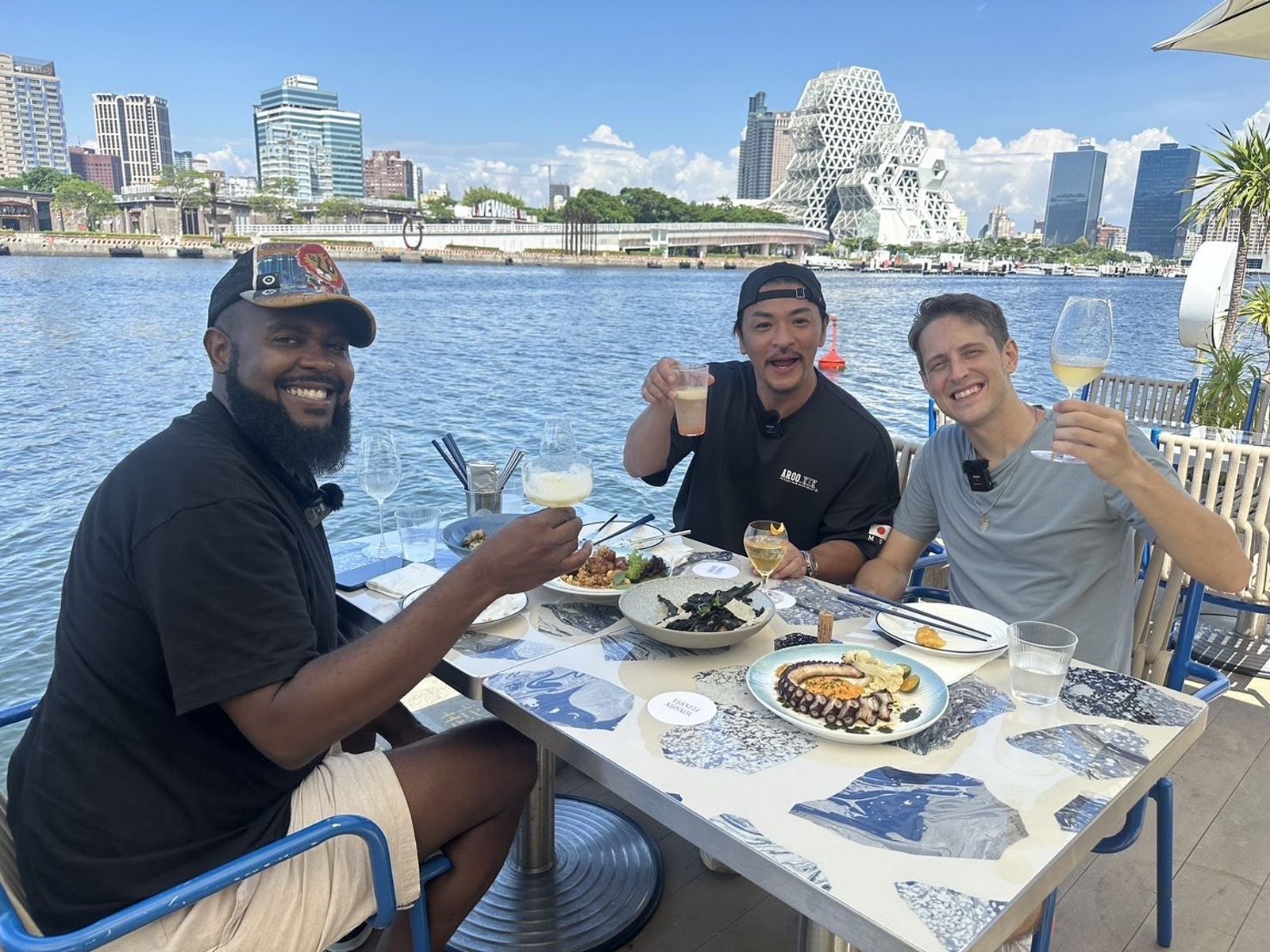 3人還到大港倉七庫時髦的水岸餐廳「永心浮島」,品嘗收服Super Junior味蕾的新式台菜,夢幻海景加上新鮮海味讓3人好滿足,直呼有國際水準的用餐體驗「只有高雄有」。