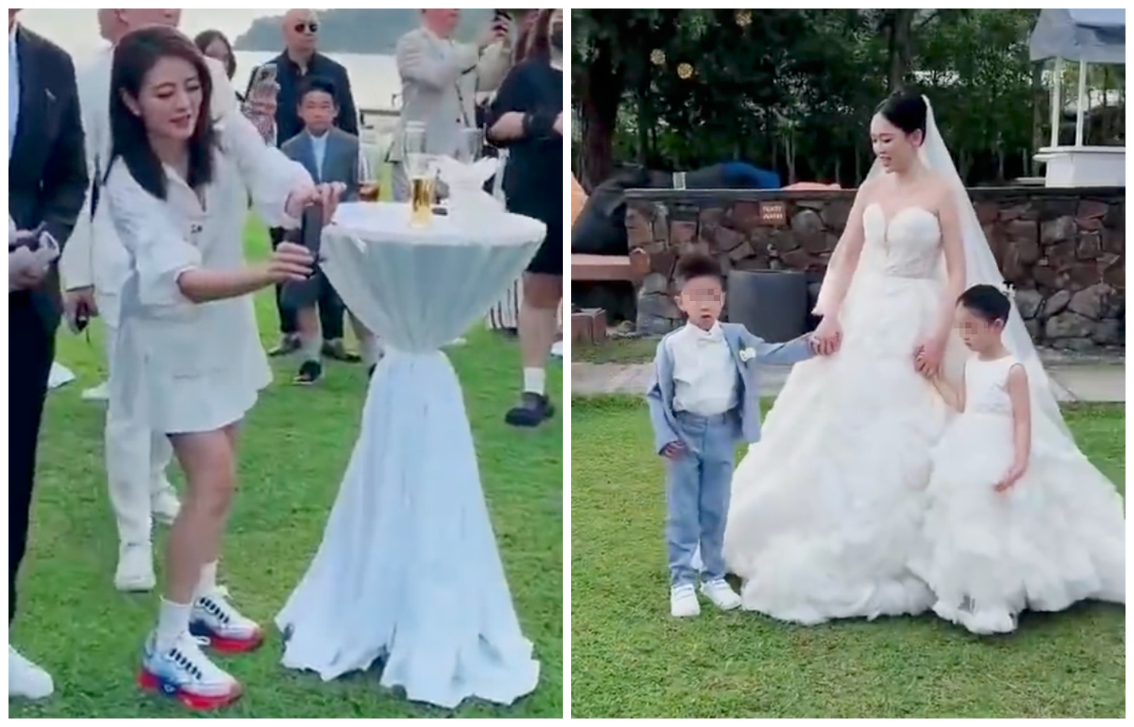 安以軒(左圖)出席陳喬恩婚禮,幫新娘和小花童拍照(右圖)。(翻攝微博)發布時間:2024.09.24 08:50 臺北時間