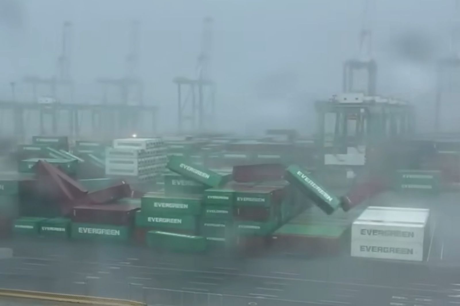 有網友在臉書「●【爆料公社二社】●」po出影片,可見過港隧道旁的貨櫃場,有數個貨櫃直接被吹飛,有的貨櫃還旋轉數圈才墜落在地。驚人畫面曝光,有許多網友嚇壞留言,「高雄現在的風真的超級大,印象中還沒遇過這麼可怕的颱風」「萬磁王來了⋯⋯」「太扯了吧!大自然的威力。」「這個風人真的可以把人吹飛」。