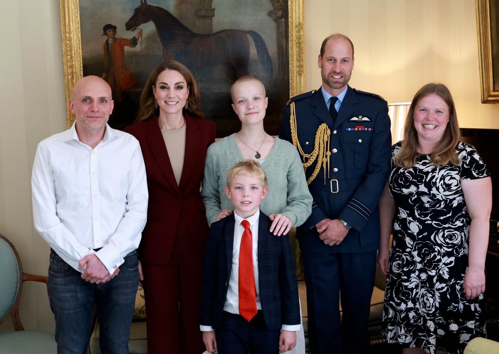照片中,莉茲與她的母親羅巴伊娜(Vicky Robayna)、繼父亞倫 (Aaron)、弟弟馬特奧(Mateo),和威廉夫婦合照。凱特王妃身穿酒紅色褲裝,氣色看起來很好,其中一張照片是她與莉茲擁抱,英國《每日郵報》解讀,這個擁抱有「我與你同在」之意。