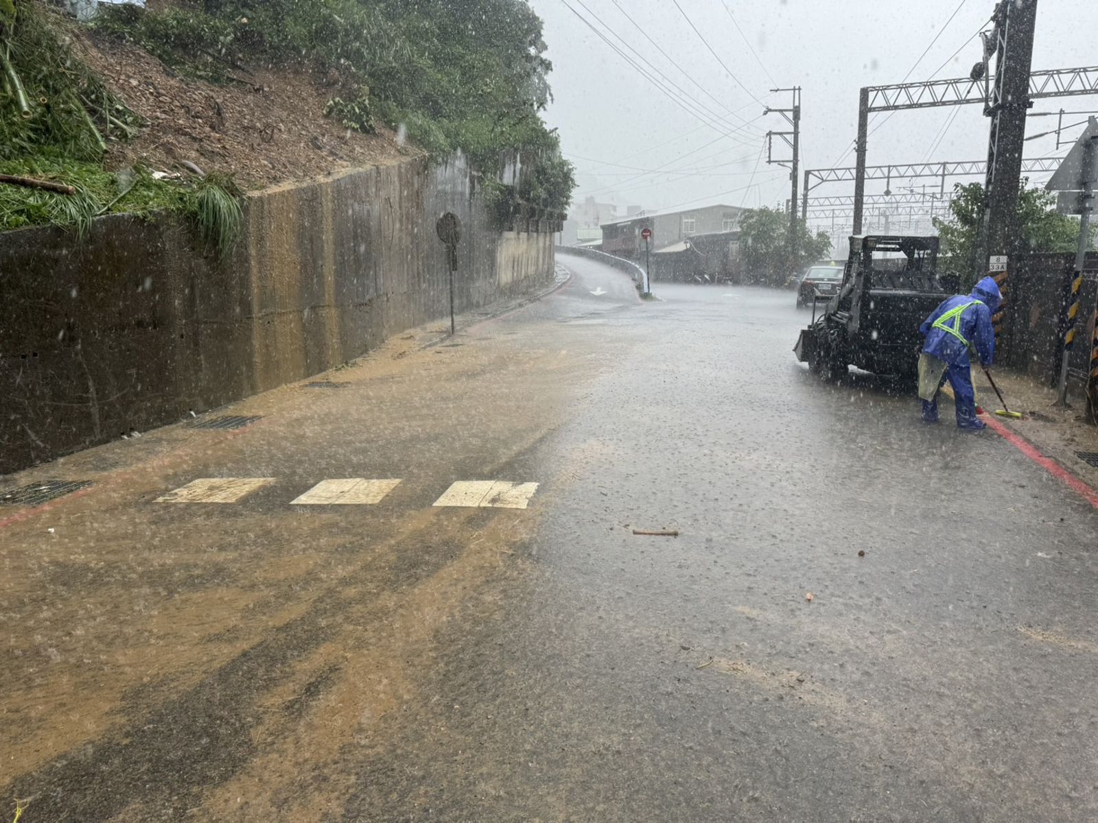 山陀兒颱風造成瑞芳邊坡坍方道路不通,瑞芳區公所緊急搶災,於下午1:30分搶通,後續邊坡整治將由工務局養工處接手。(新北市工務局提供)發布時間:2024.10.03 16:55 臺北時間