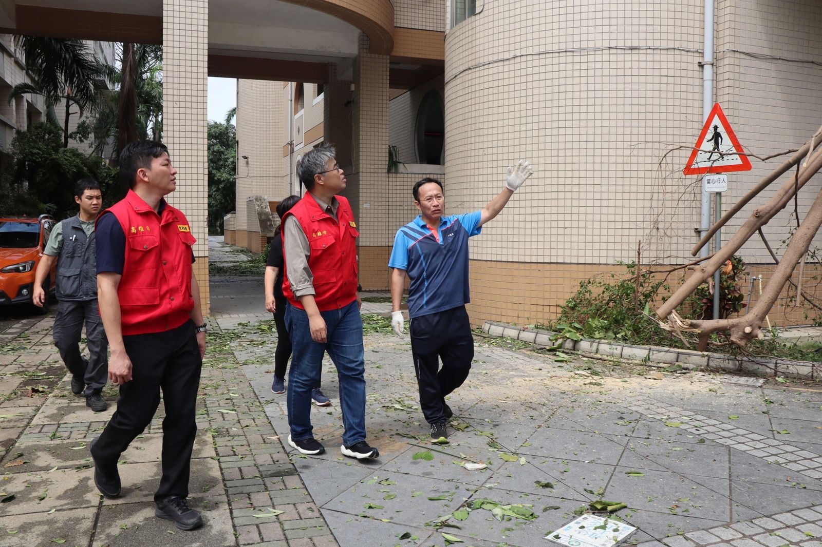 高雄市副市長李懷仁與教育局長吳立森今日至多間高中與國小勘災,協助指示修繕因颱風而受損的校園,讓師生下週一能夠正常上班上課。