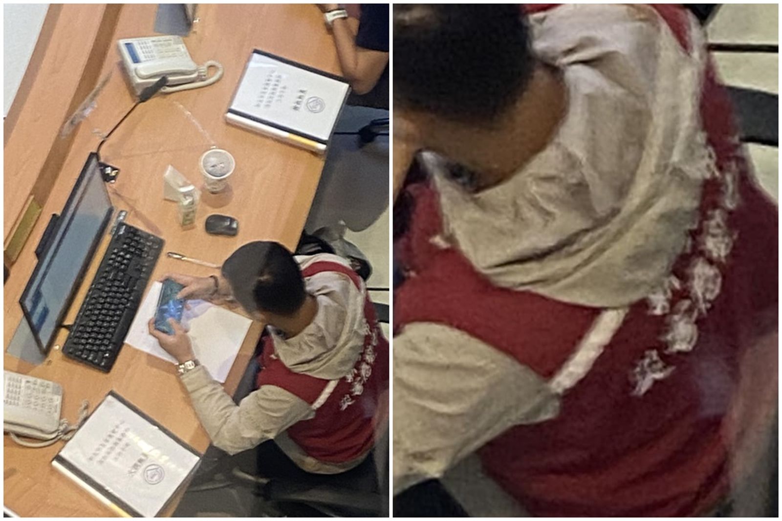 網友爆料民進黨官員在災害應變中心會議上玩手遊,結果發現圖中男子來自新北市,慘遭打臉。(翻攝自PTT)鄉民們細看後,發現圖中男子背後寫著「新北市 災害應變中心」,而非中央或綠營執政縣市,遭鄉民打臉「笑了 誤傷友軍囉」「會自刪(文)嗎,好像不是中央耶」「看不懂中文是不是?」「背心上新北市這麼明顯…」
