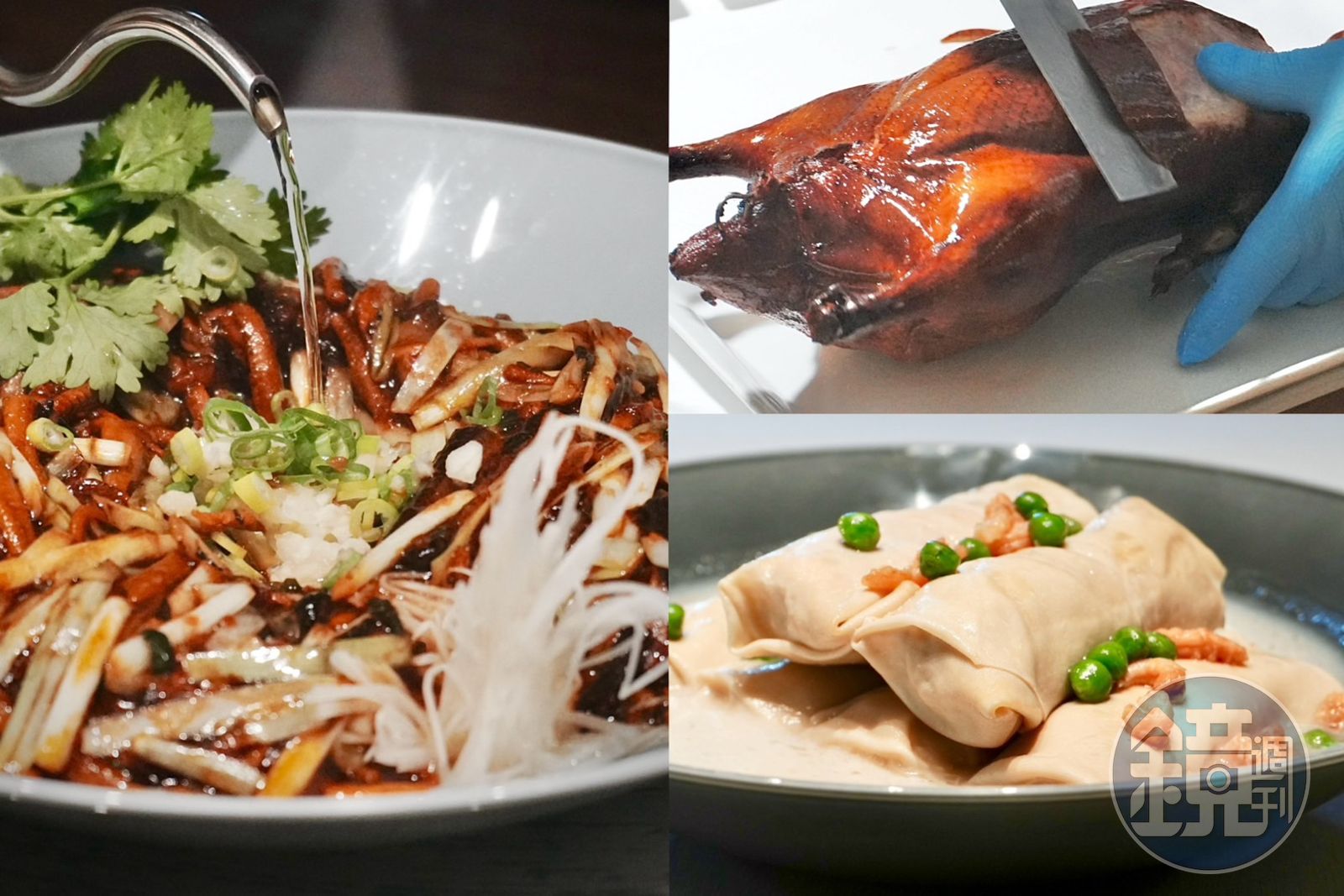 「桂花片皮烤鴨」在醃製鴨肉時使用沙薑、五香粉、八角粉搭配鹽、胡椒與桂花蜜製成的「鴨鹽」,淡淡的桂花氣息沁入肉質,增添烤鴨的優雅滋味。(2,880元/二吃,三吃另加660元、四吃另加780元)「桂花片皮烤鴨」除了基本的鴨捲餅、鴨架湯吃法,還有濃湯煨鴨粥、炒鴨絲、炙燒鴨皮壽司等多樣鴨餚。 更新時間|2024.10.07 18:35 臺北時間