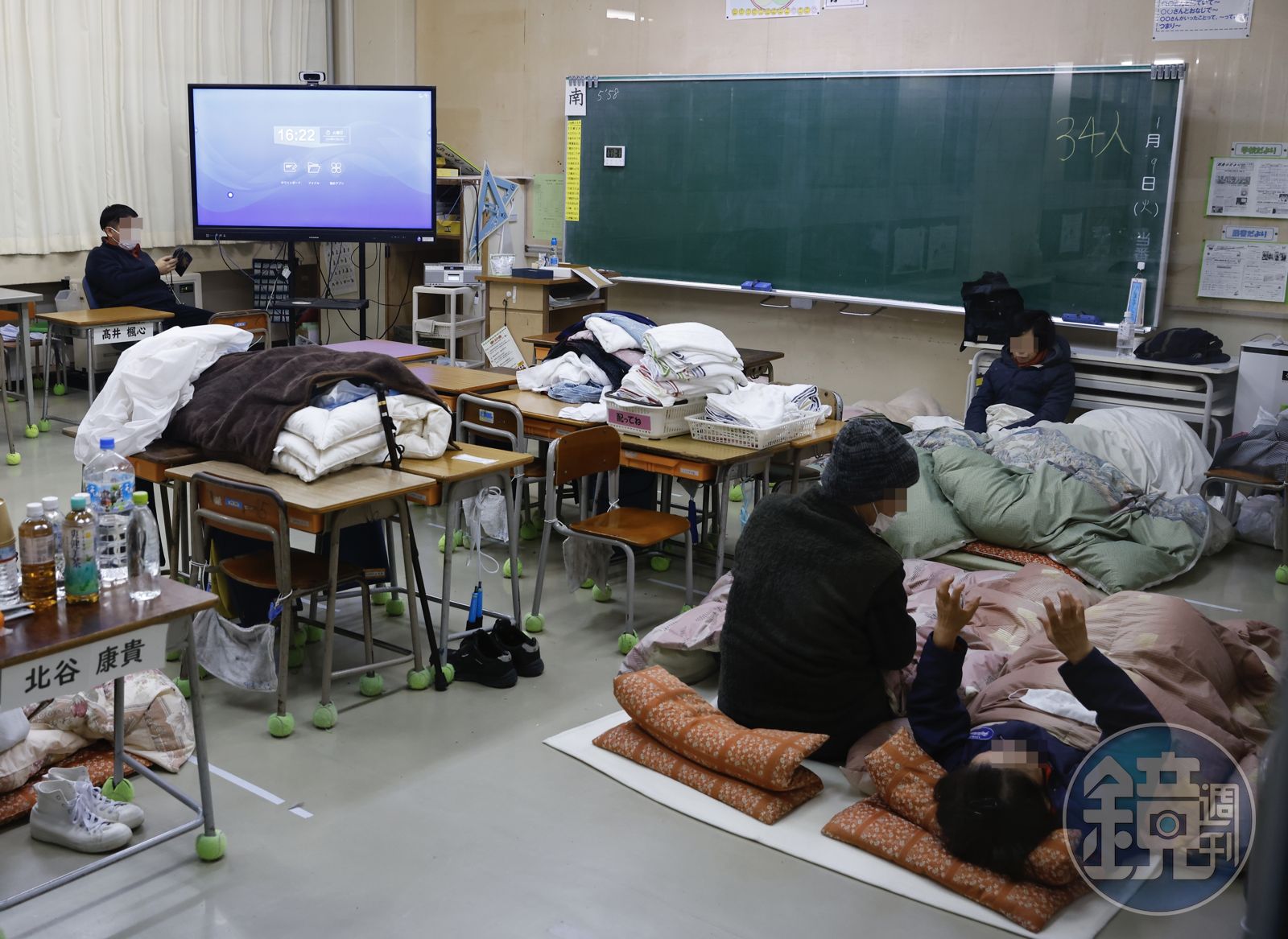 日本能登半島7.6強震救災工作進入第5天,本刊記者直擊七尾市往珠州市方向的路段,因災情嚴重堵塞,要進入珠州花了近7小時車程,但車隊非常有秩序,空出救援通道,期間路上不時從各地增援的消防車輛隊伍呼嘯而過;珠州和七尾兩地分別收容不少災民,珠州收容所有照顧行動不便的老人,幫他們找來暖爐取暖。當地的老人家都非常擔心災情,圍著電視前了解災區新聞發展。記者在七尾的避難所,見到一家人照顧小孩喝水,還有一些大人準備綿被就寢,小教室也被臨時充當安置災民的場所。