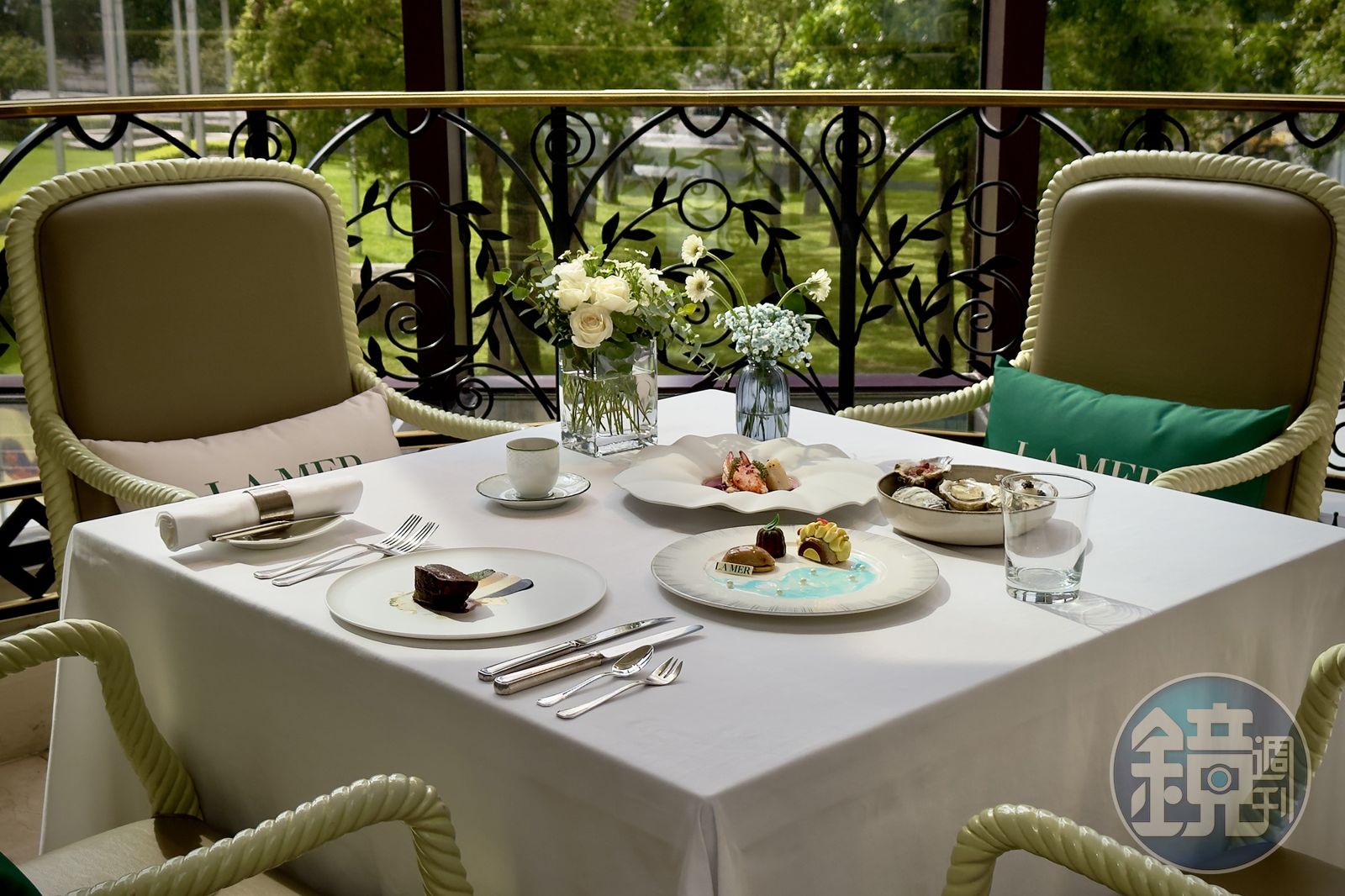 台北君悅酒店西餐部主廚羅偉洲(右)與點心房行政主廚陳建佑(左)在活動期間,餐廳也會展示LA MER海洋拉娜多款護膚保養品。來到寶艾西餐廳在活動期間,擺滿許多LA MER海洋拉娜的裝飾物。 ★《鏡週刊》關心您:未滿18歲禁止飲酒,飲酒過量害人害己,酒後不開車,安全有保障。