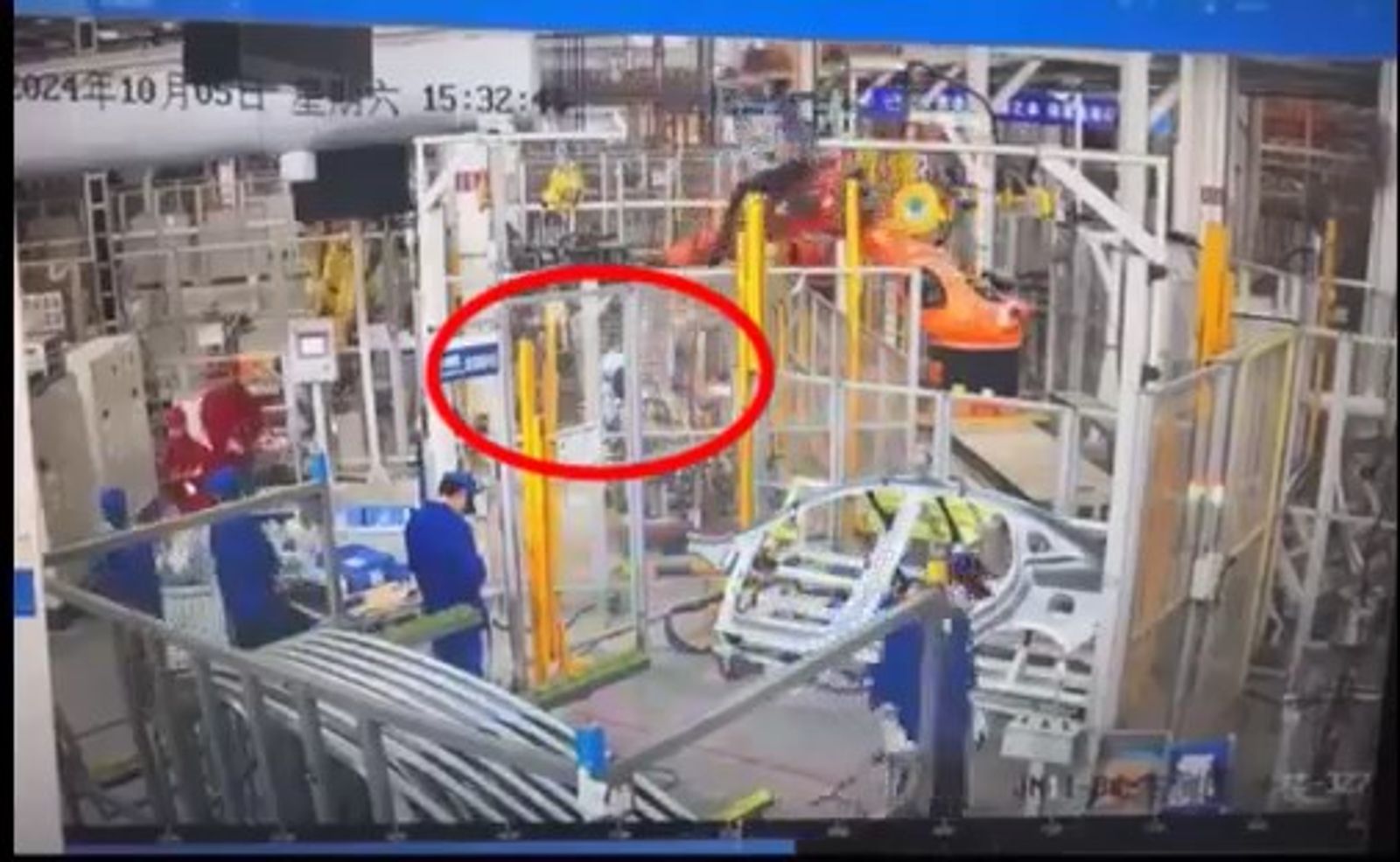 從網傳的影片可見,事發在本月5日下午3點多左右,一群工人在工廠內作業,其中有一名工人跑進內側作業區。一開始整體運作並無發生異常狀況,但隨後其中一台機器人,卻朝著內側作業區的該名工人頭部,狠狠重擊下去。