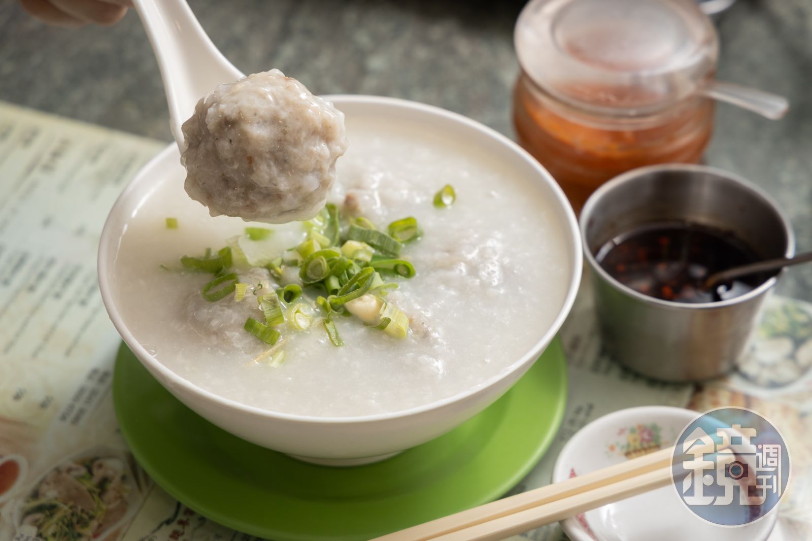 踏入店內,一旁就是料理區,半開放式的廚房可以清楚看見師傅煮粥,老師傅對於火侯掌控爐火純青,對熟客來說,羅富記出品必是品質保證,口味數十年如一日。現點現滾的「鯪魚球粥」粥底綿滑,一碗粥內藏了5顆大魚球,看起來很扎實,咬下去才發現它是軟Q口感,肉質鮮甜香滑。