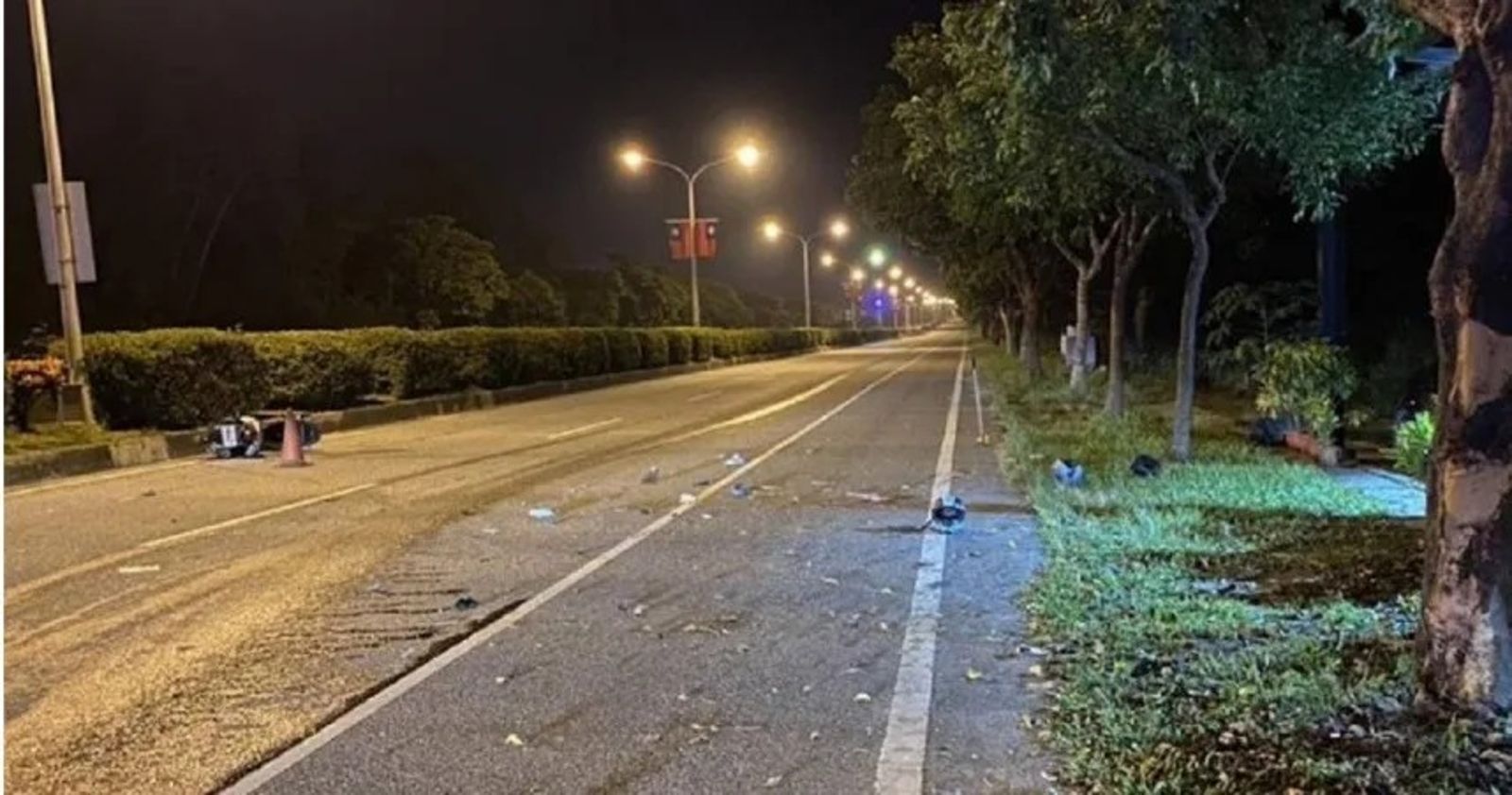 2名國立東華大學生騎車雙載時,不明原因自撞路樹當場噴飛,釀1死1傷。(翻攝畫面)發布時間:2024.10.16 10:41 臺北時間
