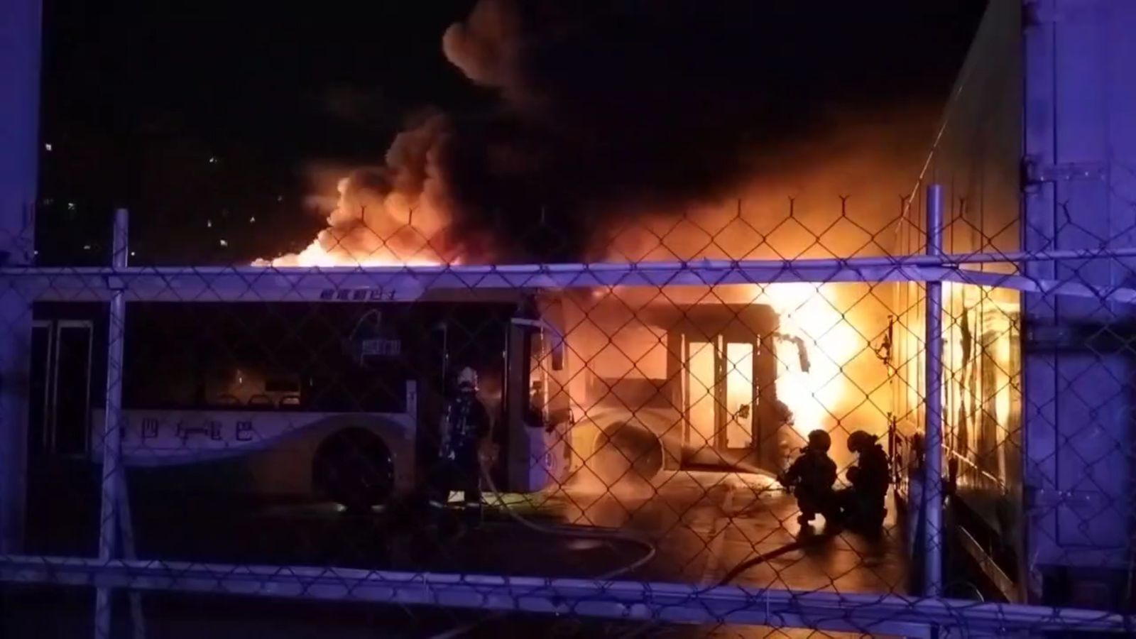 台中凌晨「連環火燒車」 9輛電動巴士燒到剩骨架