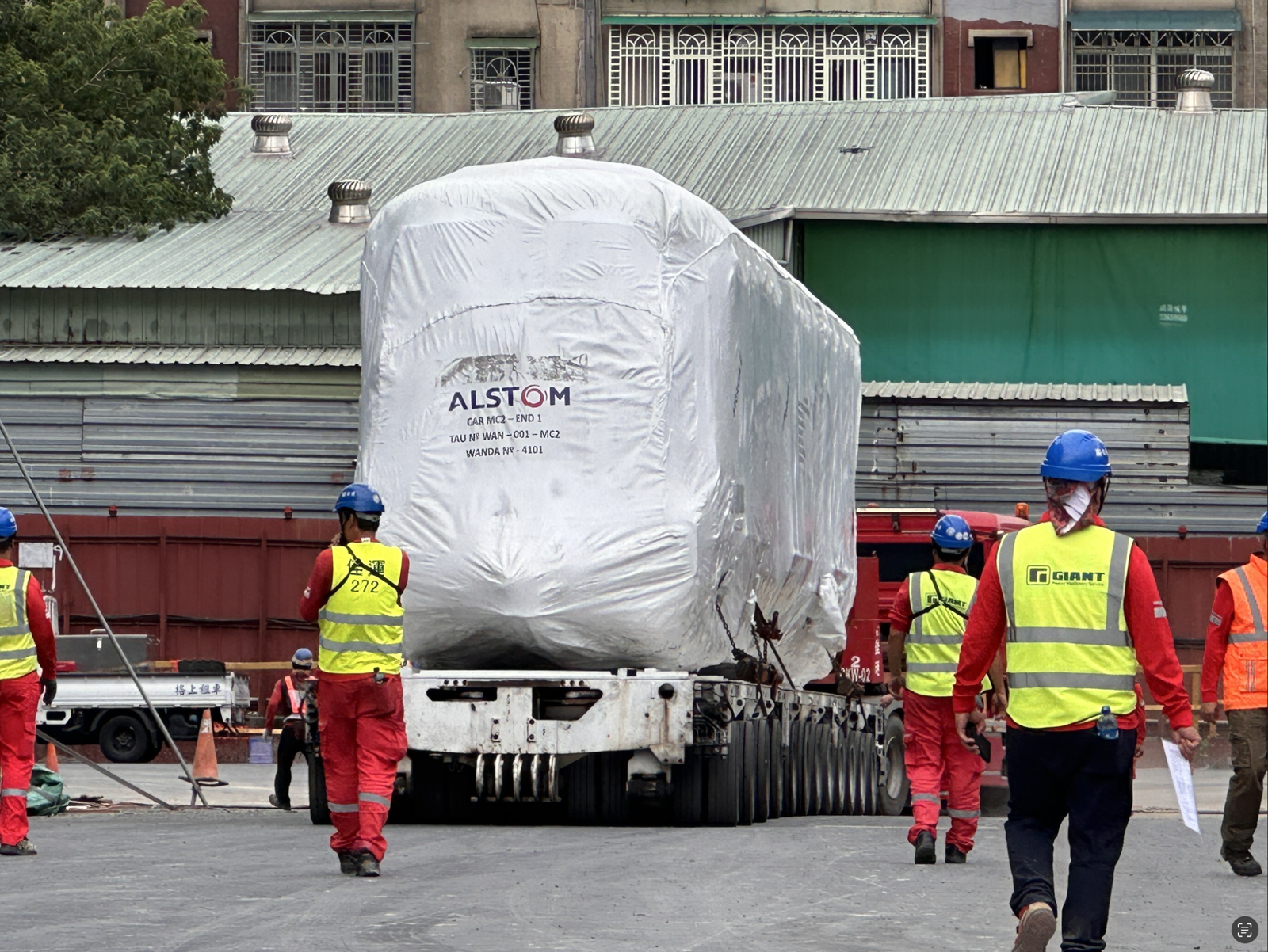 機工處進一步指出,本列電聯車於8月底自巴西桑托斯港包裝上船,行經大西洋、繞過好望角至新加坡港進行中轉,再經馬尼拉運至高雄港;到港卸載之後以專用運輸車輛於夜間離峰時間載運到萬大線的金城機廠。在完成這趟長達18,000公里的旅程後,終於風塵僕僕抵達萬大線金城機廠。