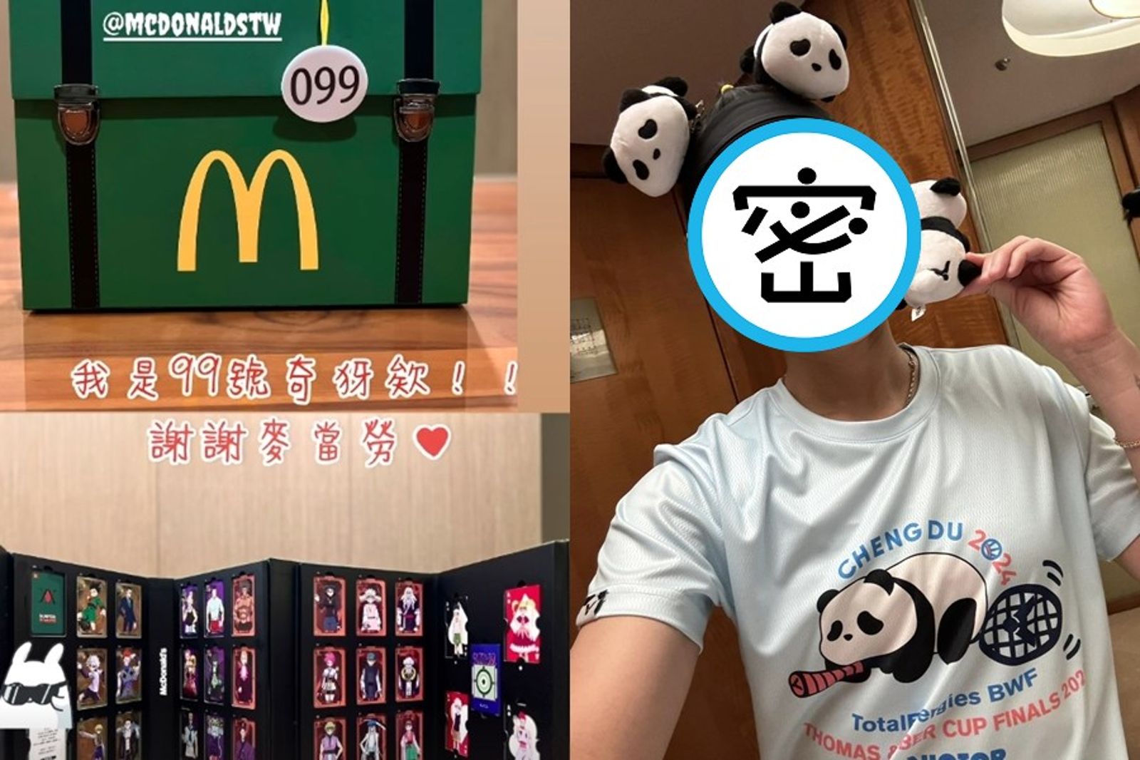 戴資穎今在IG發布限時動態,透露自己也收到《獵人》卡包公關品,並開心表示:「我是99號奇犽欸!!謝謝麥當勞。」消息傳到Threads上後,與之前炎上不同,幾乎獲得一遍好評,網友紛紛留言「看到99號是戴資穎,居然在辦公室克制不住哭了?」「我的愛拿到我的愛,恭喜麥當勞安全下莊😍」「給她完全可以!拜託都給她!」。